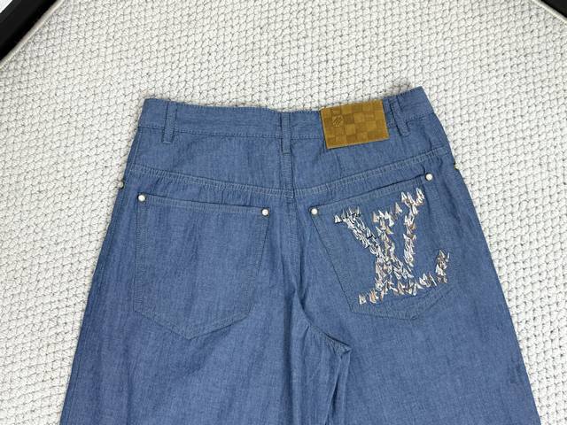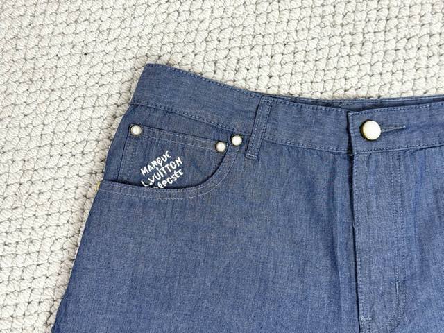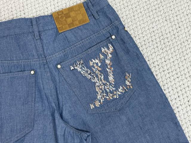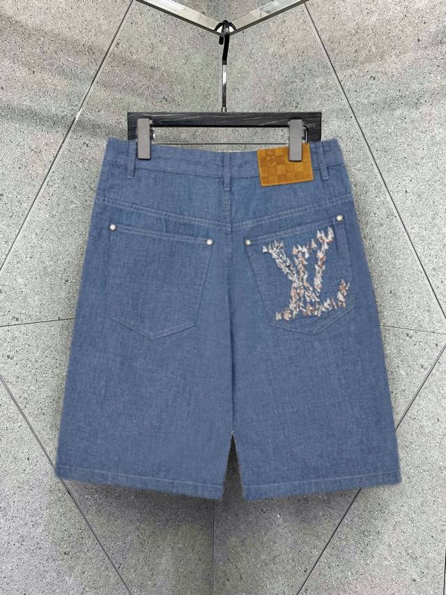 Lv Louis Vuitton sailboat embroidered youth denim shorts Spot 28 30 32 34