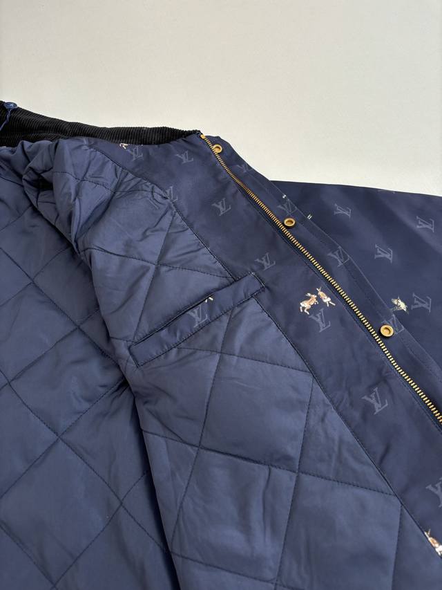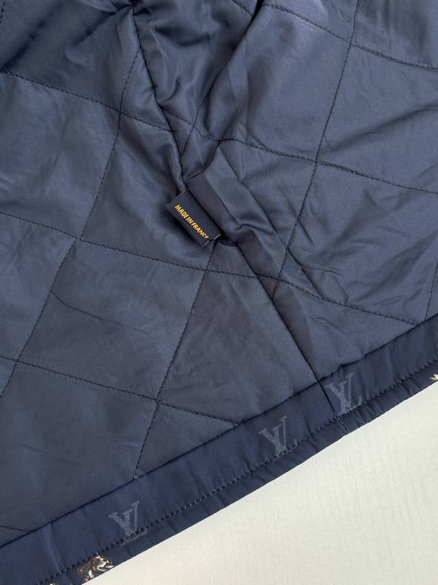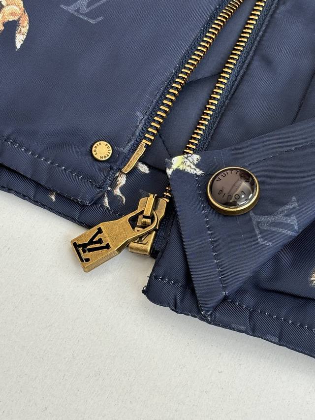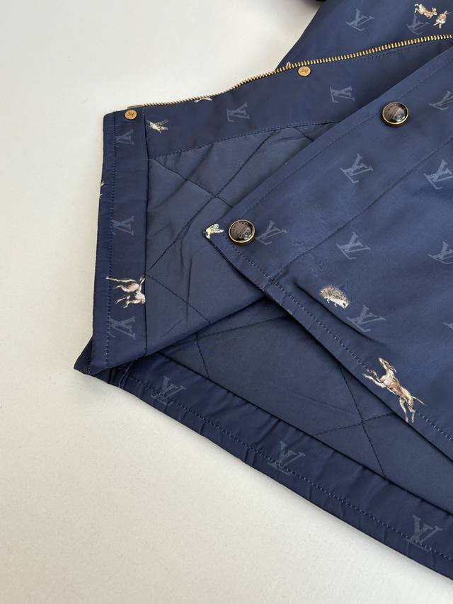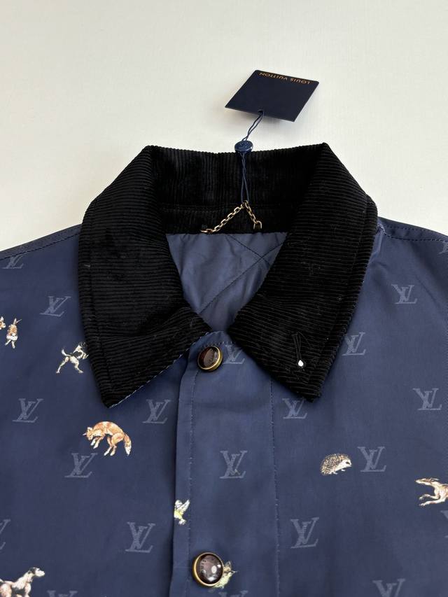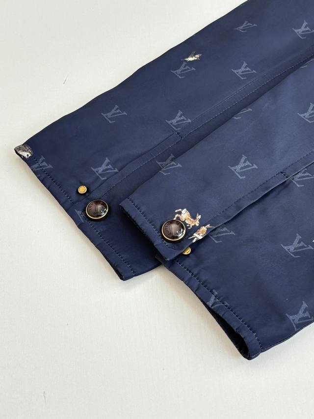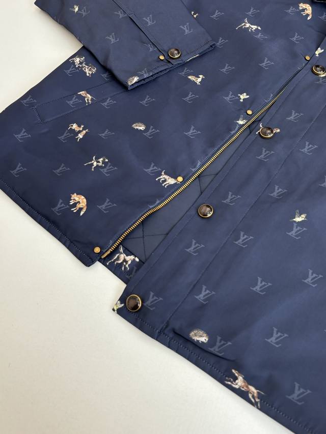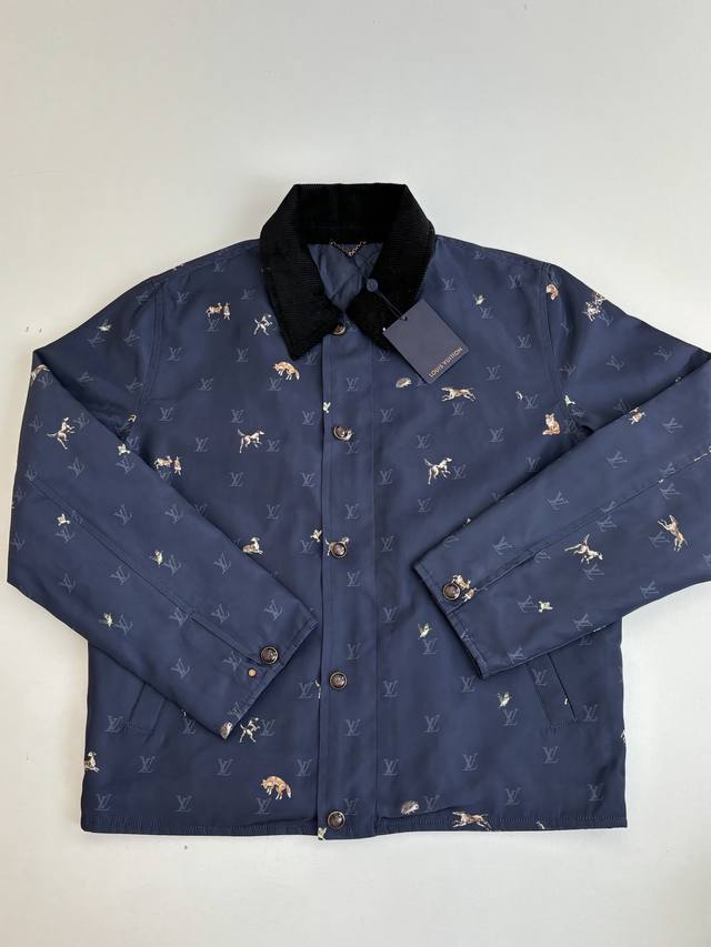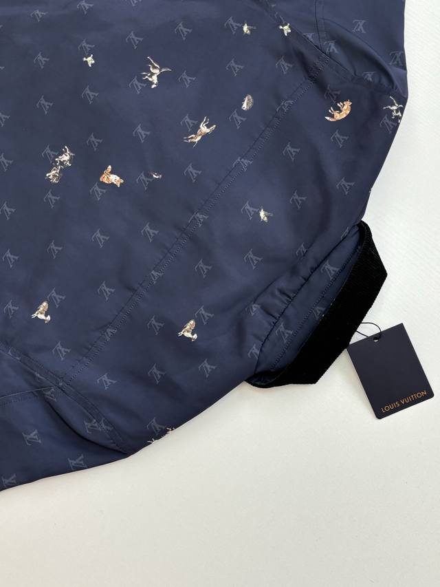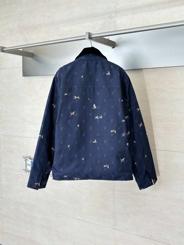 LV Louis Vuitton Ss26 Early Spring New Animal Print Corduroy Lapel Jacket DDD. Made of high-density, wrinkle-resistant nylon fabric, this jacket is lightweight yet crisp, smooth to the touch, and offers excellent windproof properties, ensuring comfortable wear. The entire garment features the brand's classic Monogram logo and animal prints, with delicate and vibrant colors and clean, crisp edges, combining brand recognition with a playful design. The collar features a corduroy lapel, offering a soft, vintage feel that contrasts with the smooth fabric, enriching the visual experience. The placket uses metal snap buttons with a finely polished surface, ensuring smooth opening and closing and high durability. The overall fit is a slim, casual style, with a clean and tailored cut that fits the body perfectly, allowing for freedom of movement while maintaining a sleek silhouette. Size: S, M, L, XL Model (180cm, 160kg) wearing size 48 (loose fit) Material: Nylon Fit: Slim casual Color: Navy blue Size: 46485052