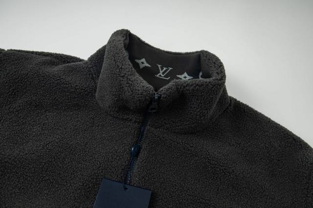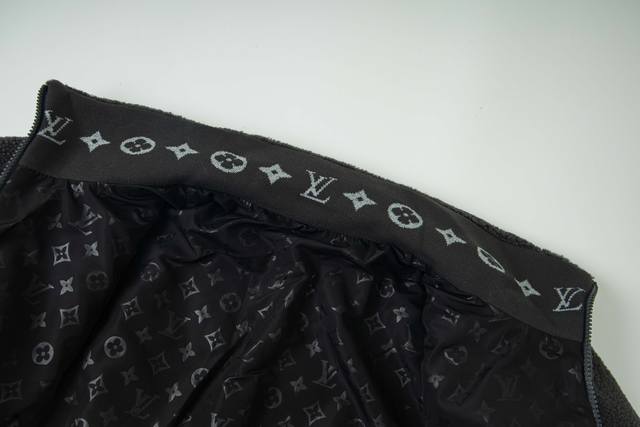 LV Louis Vuitton Teddy Wool Blend Suede Waist-cinching Jacket. This suede waist-cinching jacket features ribbed cuffs and an inner collar adorned with Monogram jacquard, and is branded with a Louis Vuitton patch on the chest. Its elegant style makes it a perfect choice for early autumn layering. Sizes 46, 48, 50, 52 (DDD)