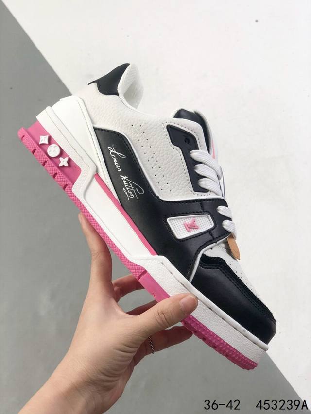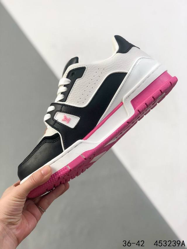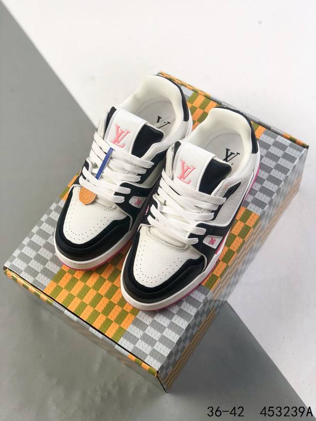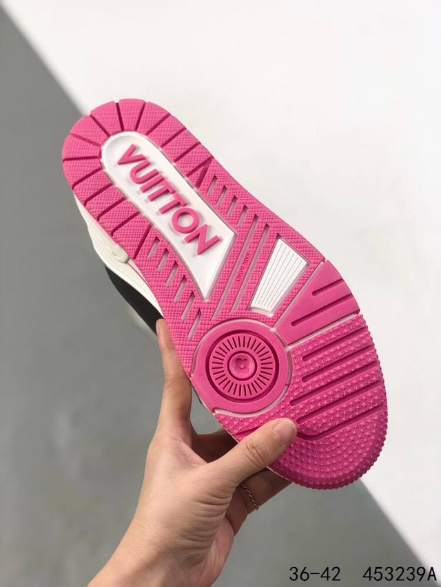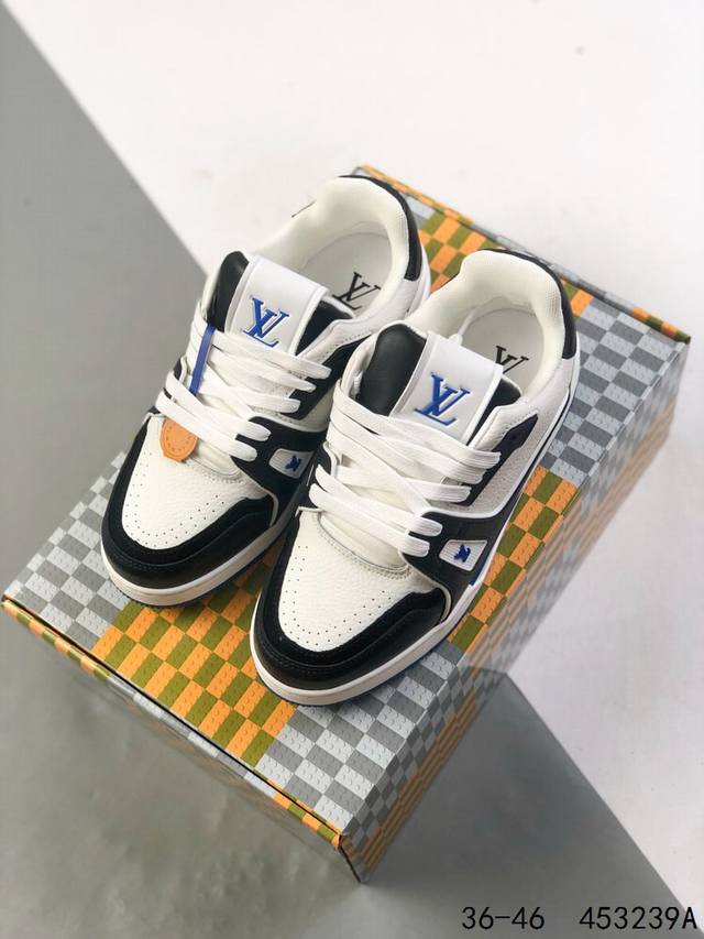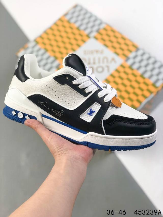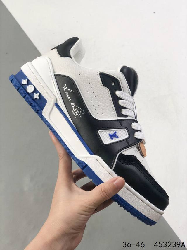 LV Louis Vuitton Trail Sneaker Low Casual Sports Culture All-match Basketball Sneakers with TPR Glossy Sole #Bending Resistant Plastic Support Plate #Insole Embedded in Ultra-Soft Latex Material Basketball Shoes