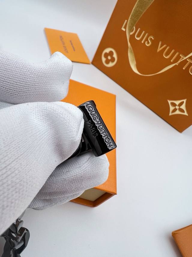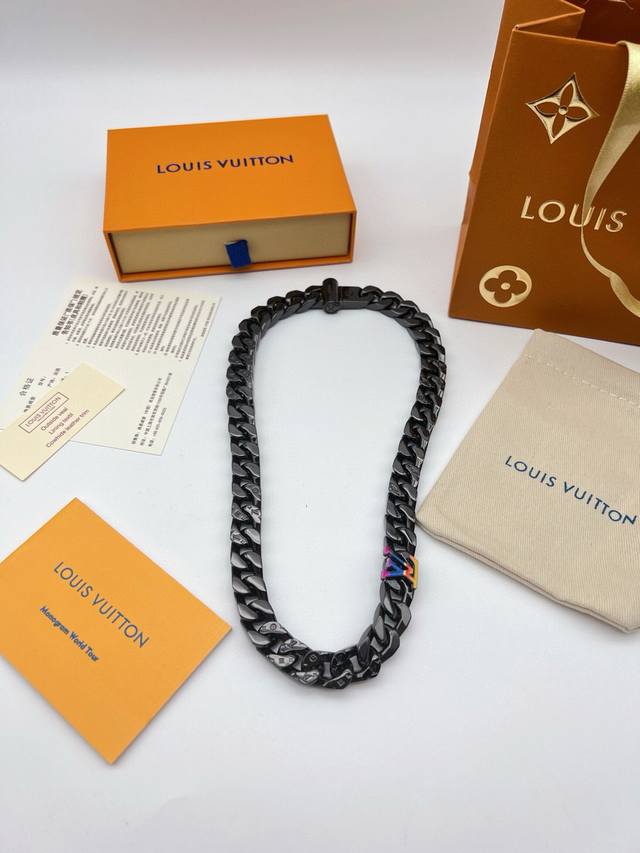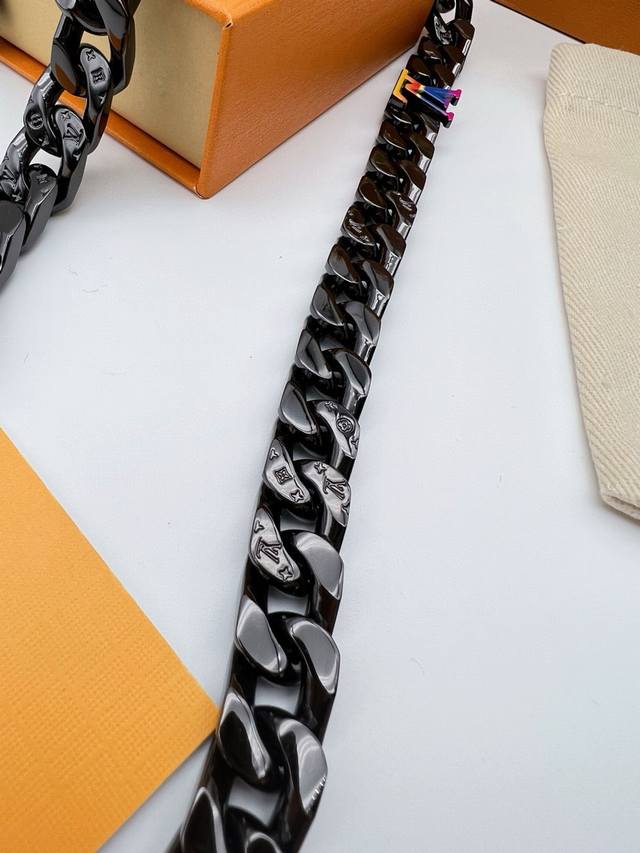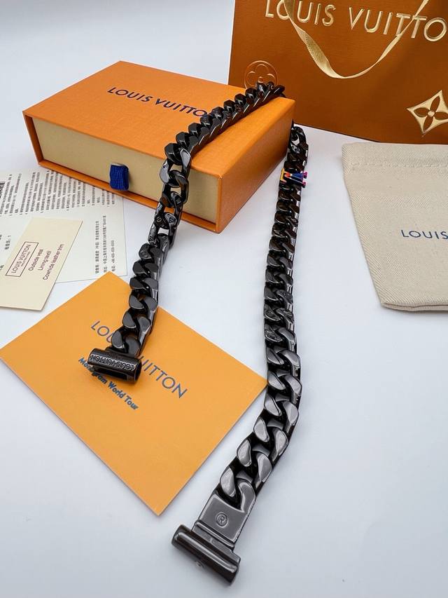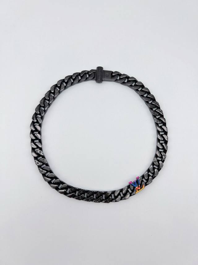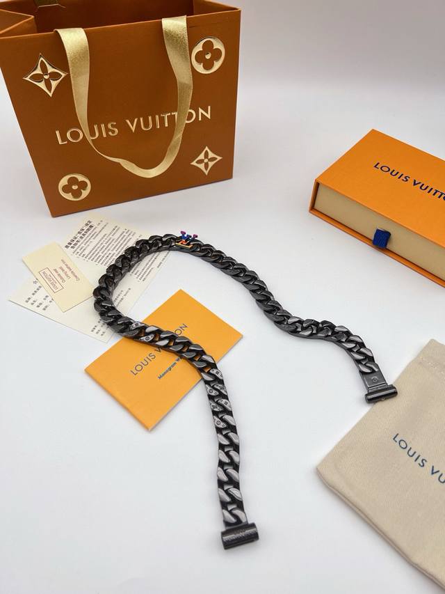 Lv Louis Vuitton wide Cuban magnetic buckle black necklace Original development