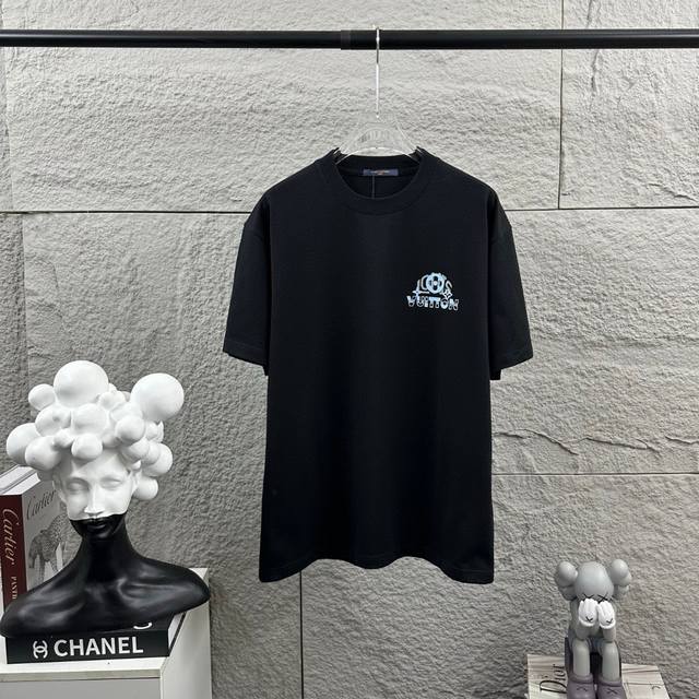 LV Louis*2025 Spring/Summer New Classic Large V Letter 3D Thick Silicone Design + Flocking Process Custom Double Yarn Plain Cotton Short-Sleeve T-Shirt Unisex Sizes: S 90-130 lbs M 120-150 lbs L 140-165 lbs XL 160-180 lbs XXL 180-210 lbs Colors: Black, White