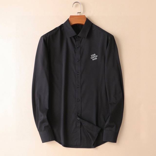 Lv Men's Long-Sleeve Shirt, All Seasons. Hong Kong import, currently sold on the official website, high-quality ready-to-wear. Made entirely of imported bamboo fiber fabric, with a smooth, satin-like feel and a unique fashionable sheen, offering an exceptional wearing experience! The brand logo design on the chest adds a touch of luxury. Superb tailoring and a simple, clean style suit practical male dressing habits, making it the top choice for sophisticated urban business men. Sizes: M-3XL 39-43 DDD