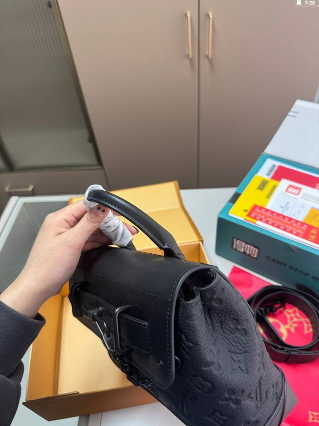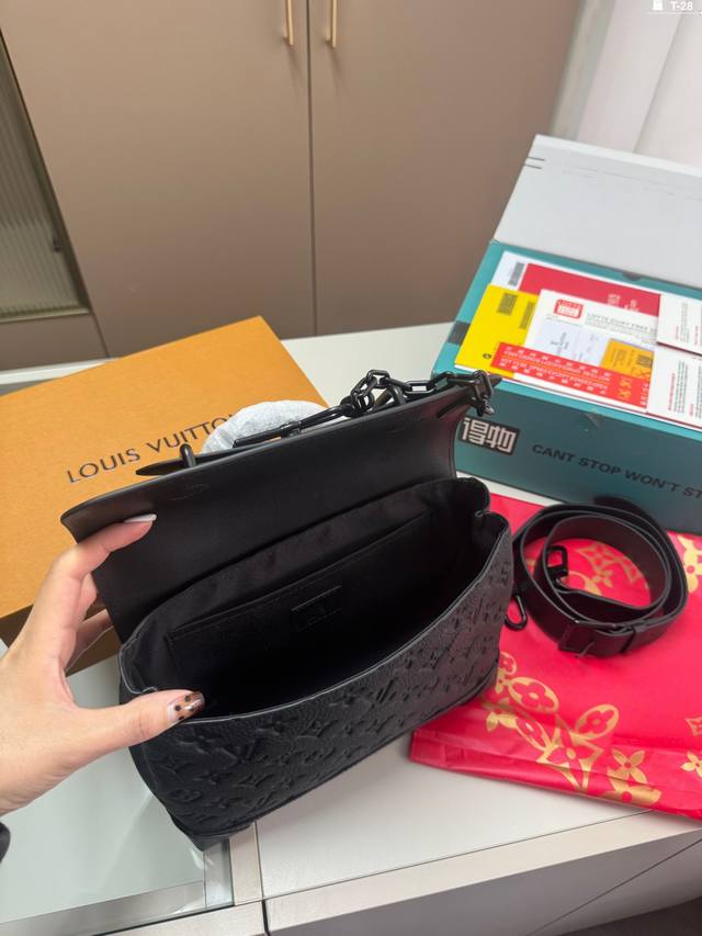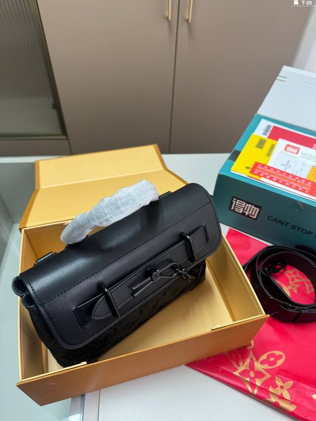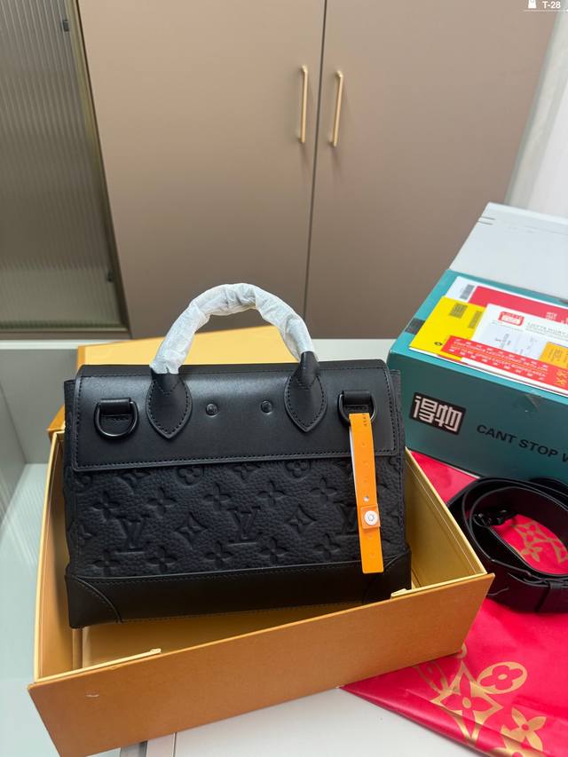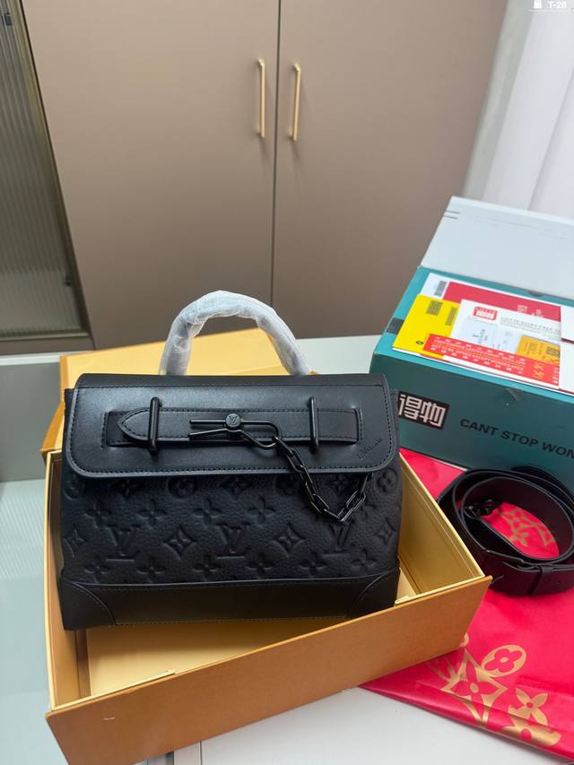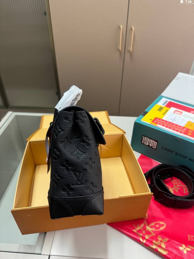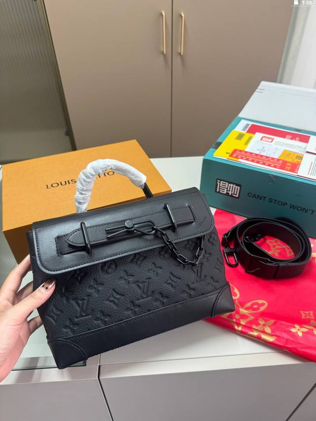 LV Men's Messenger Bag, Cowhide Leather, Steamer Messenger Bag. The structure and accessories are stylish and youthful. The bag's size is just right, and it's very soft to the touch! But it's very stylish! Search LV Men's Messenger Bag, T-28, size 25.8.17, folding box, airplane box.