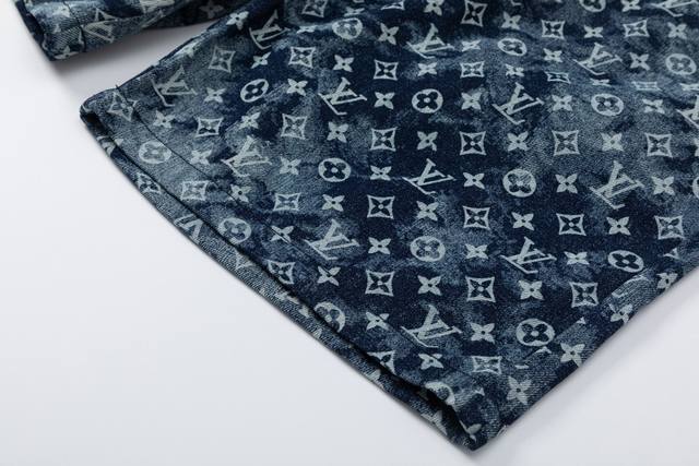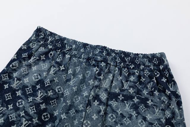 Lv New summer Sottfrunk series unisex jacquard denim shorts Color: Blue Size: XS