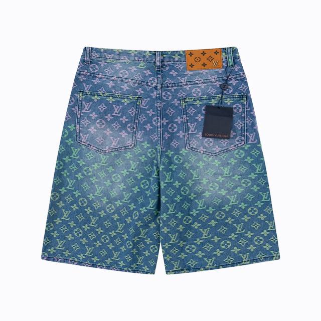 Lv New summer style gradient three-letter logo custom leather label unisex denim shorts shorts