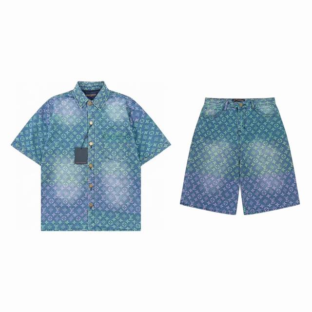 Louis Vuitton 25Ss Fire Cloud Monogram Full Print Short Sleeve Made of 32-count
