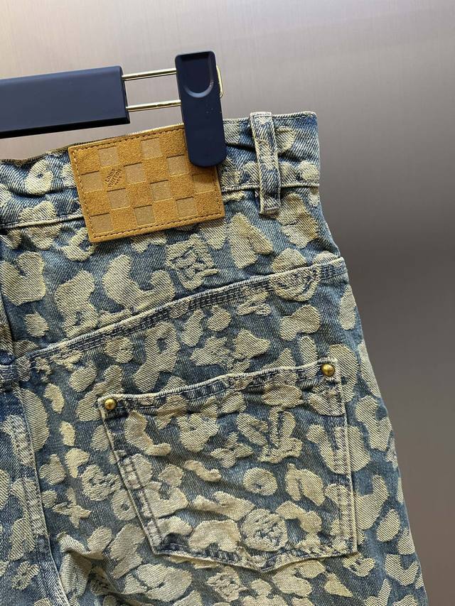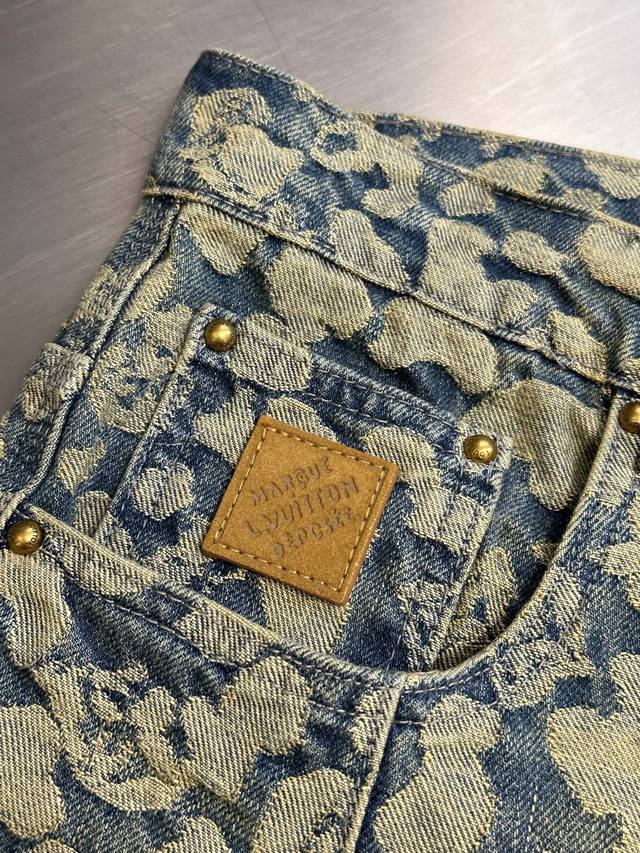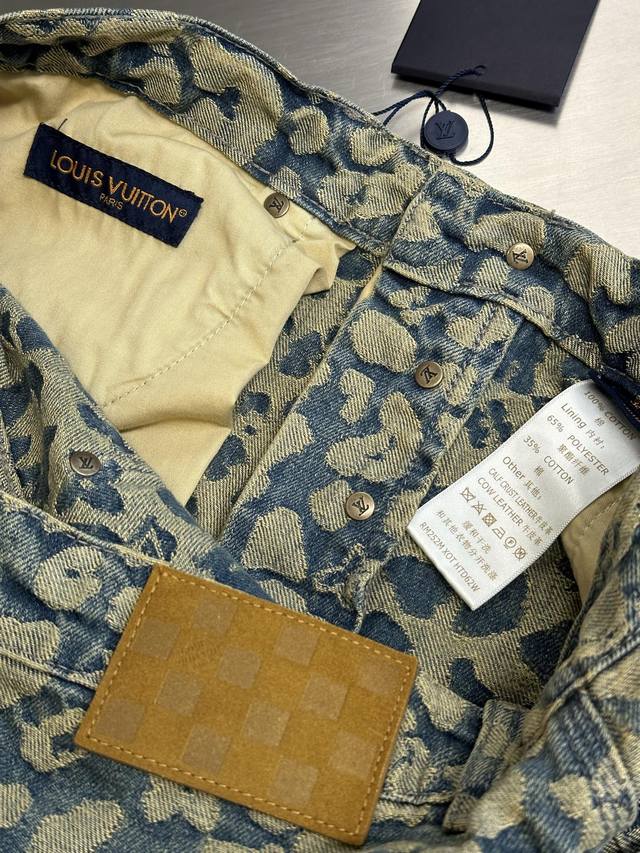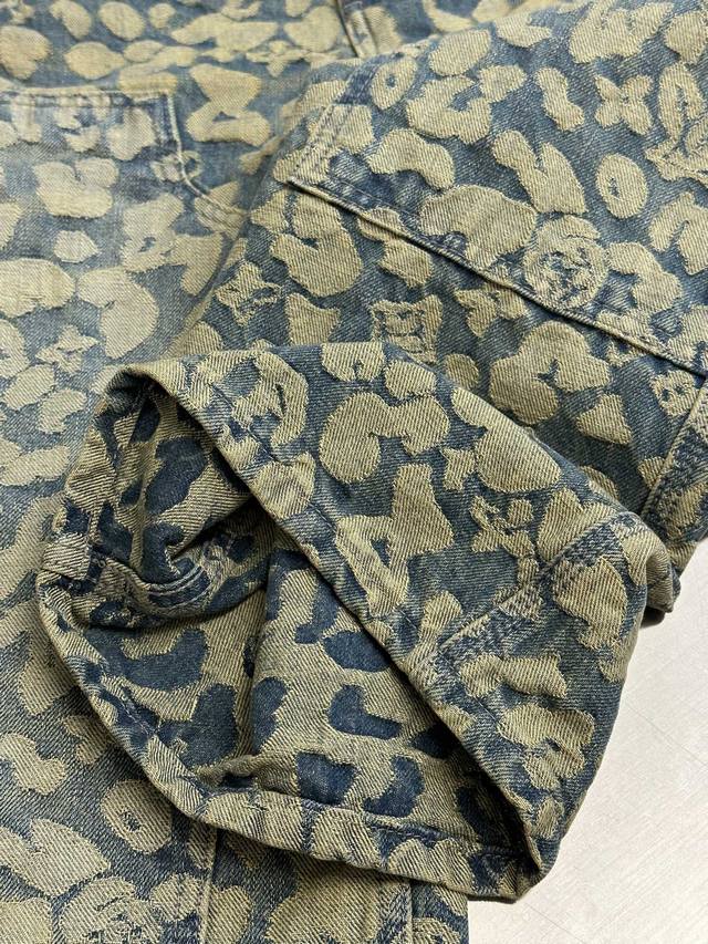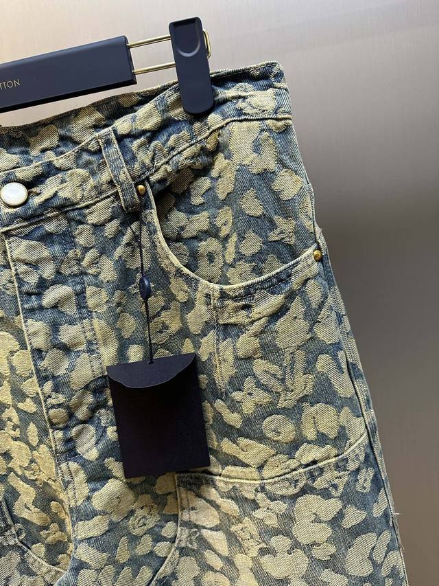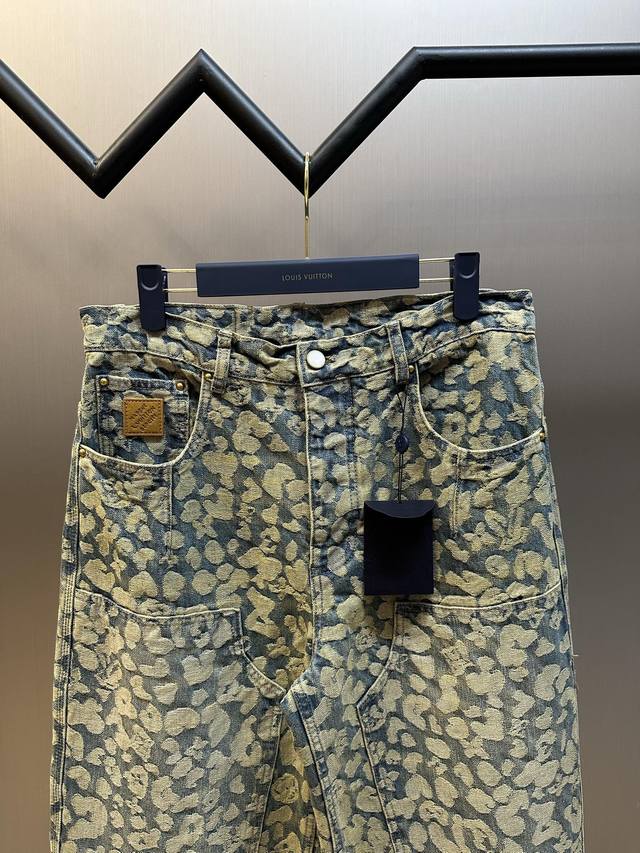 Lv Nigo Jacquard Cargo Jeans DDD This washed cargo jeans is from the Autumn/Winter collection created in collaboration between pharrell Williams and Nigo, offering a modern take on leopard print with a streetwear vibe. Nigo's classic camouflage jacquard design incorporates the Monogram logo, while the relaxed silhouette and patchwork construction inject a modern touch into a casual look. DDD Size: 30, 32, 34, 36 DDD