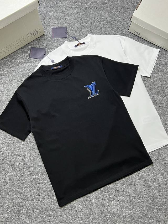 Lv Short-sleeved T-shirt Colors: Black, White Craftsmanship: Embroidered lettering on the front and back Sizes: S-XL Fabric: 300g