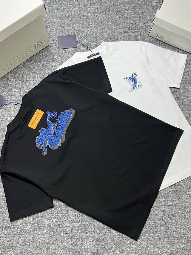 / Lv Short-sleeved T-shirt Colors: Black, White Craftsmanship: Embroidered letteri