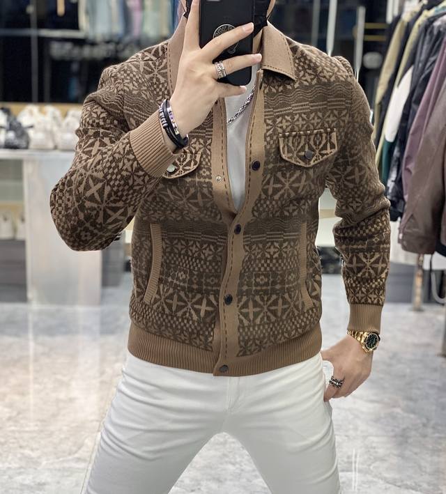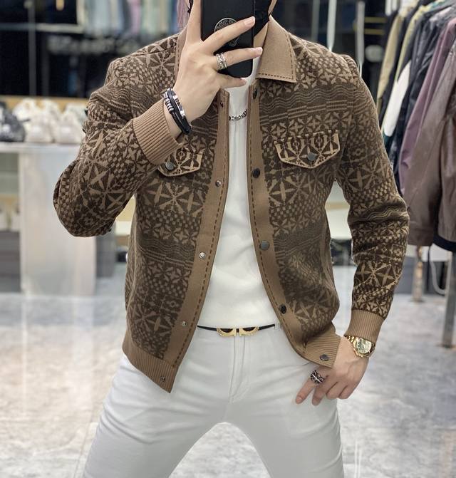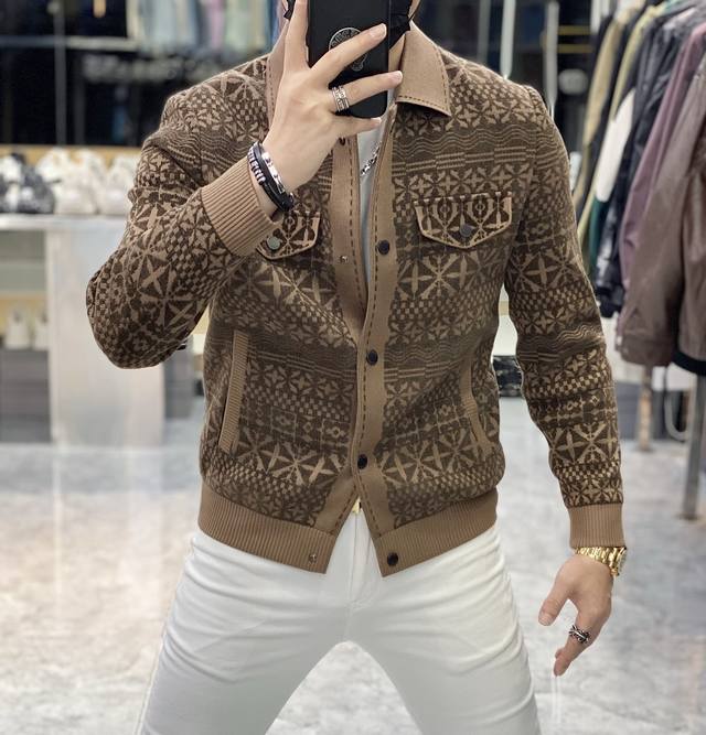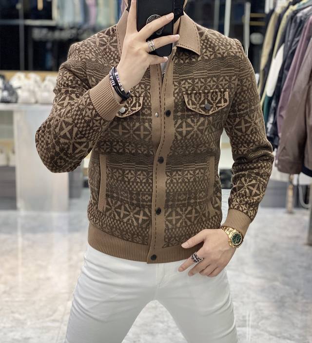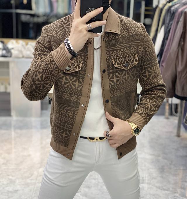 Lv Ss Autumn Hot Selling Knitted Wool Jacket, made with custom high-quality polyester fiber fabric! Top fashion brand element logo design, complete with all three labels! Original hardware accessories, smooth lines, exquisite craftsmanship, superb fit, comfortable fabric, windproof and warm, easy to match and very stylish. A must-have for fashionable men! Sizes: M-3XL. Model 178cm, 145kg wears L,