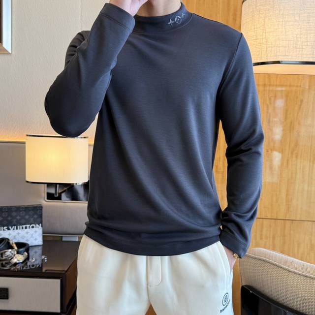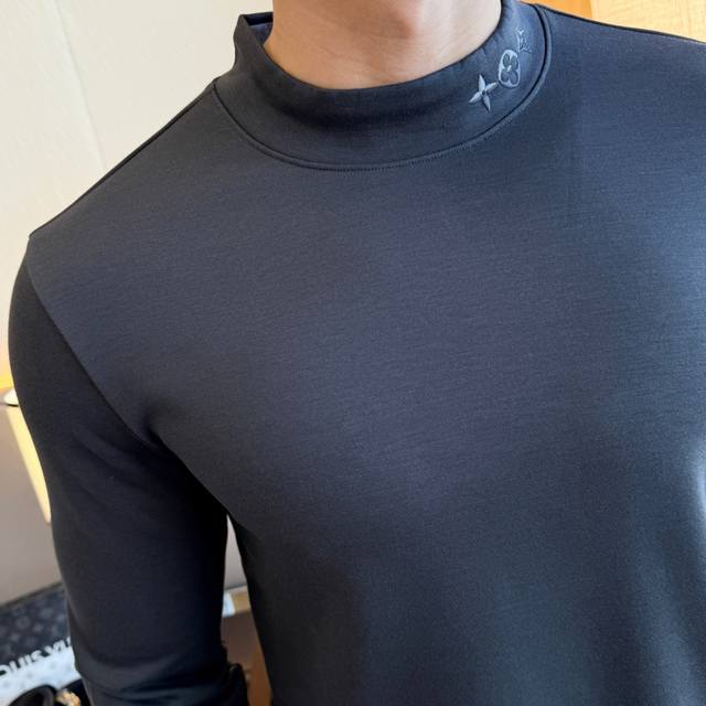 Lv Ss Autumn Hot Selling Thin Fleece Long-Sleeve T-Shirt. Made with custom high-grade cotton blend fabric and stylish designer logo design, it's soft, delicate, comfortable, and warm. Multiple craftsmanship processes ensure its quality. A must-have basic undershirt for every man's wardrobe, it can be paired with various outfits anytime, anywhere to meet your daily needs. The design is simple yet sophisticated. Grab yours now! Standard fit, sizes: M~4XL. Model 178cm, 145kg wears size L (