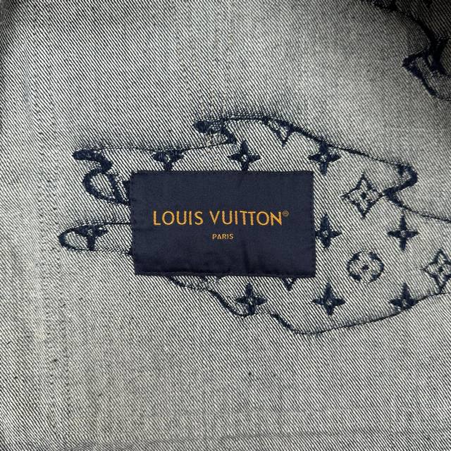This workwear-inspired jacket features a lightweight washed denim waistband with an elegant curved collar. The Monogram Clouds jacquard patchwork pays homage to traditional Japanese patchwork techniques, showcasing the creative ingenuity Pharrellwilliams and Nigo have infused into their Fall/Winter 2025 collection. Can be paired with the same style for a runway look.