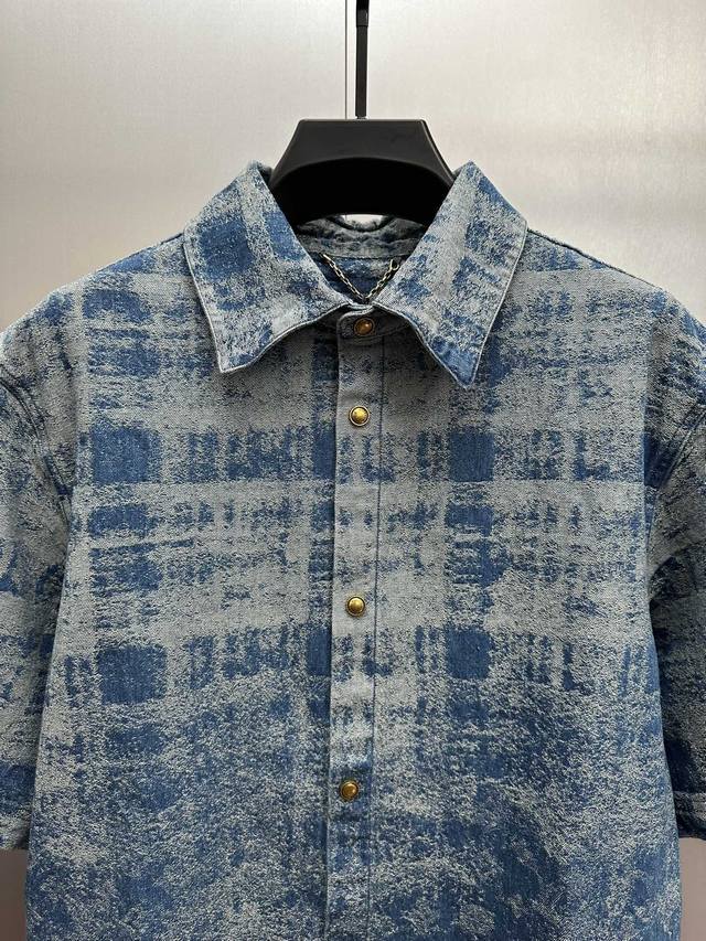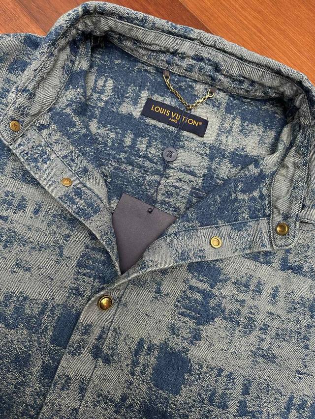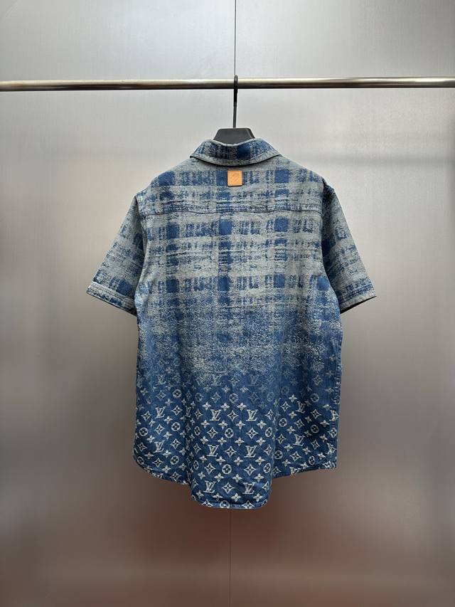 LV Tie-Dye Monogram Denim Short-Sleeve Shirt DDD The tie-dye texture clashes with LV's monogram print, creating a layered look with a blue-to-white gradient denim feel! Made from custom-washed denim, it's soft yet breathable, offering unrestricted comfort for summer. The relaxed, drop-shoulder design flatters all body types. Wear it alone for a casual, relaxed look, or layer it over a T-shirt for a trendy vibe. Metal buttons add a touch of detail, making it suitable for everything from everyday outings to casual gatherings. A must-have for any fashionista looking for a summery look! DDD Size: SML XL DDD Ddd