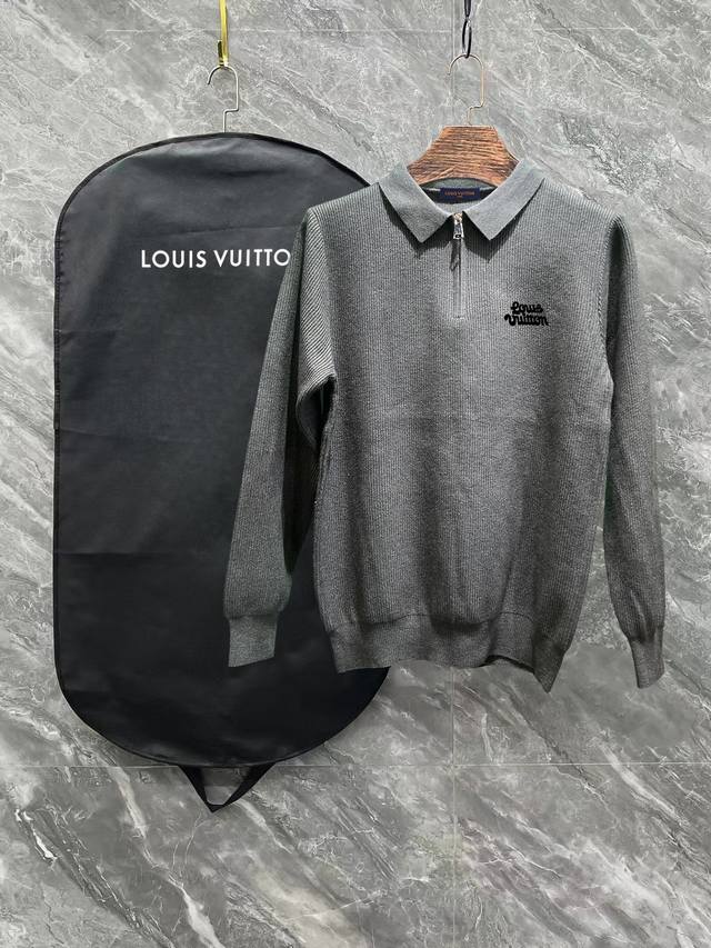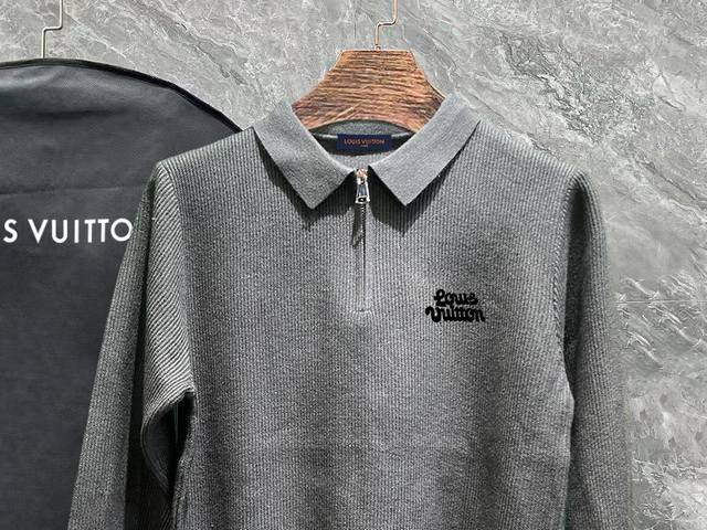 Lv Zippered Collar Sweater, 2025 Newest Casual Polo Wool Sweater. The fabric is delicate, soft, comfortable, skin-friendly, warm, and resistant to deformation. It boasts a simple yet sophisticated style, with a beautifully crafted logo on the chest! It looks fantastic on. Colors: Black, Gray. Sizes: S-XL.