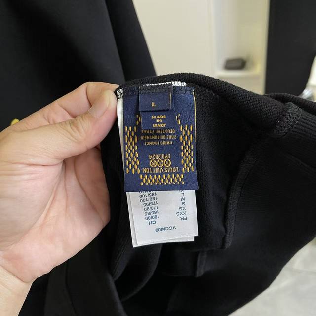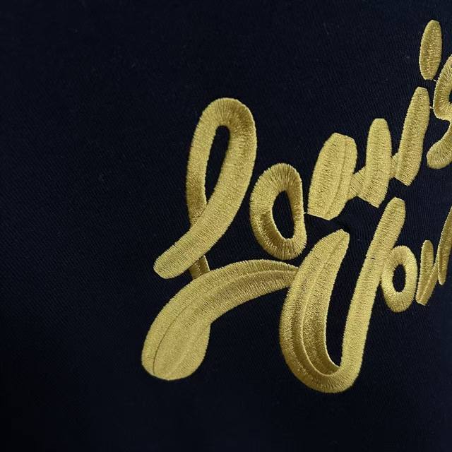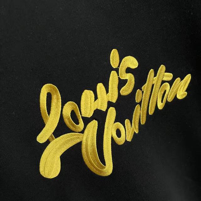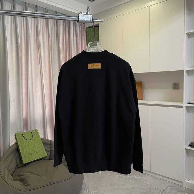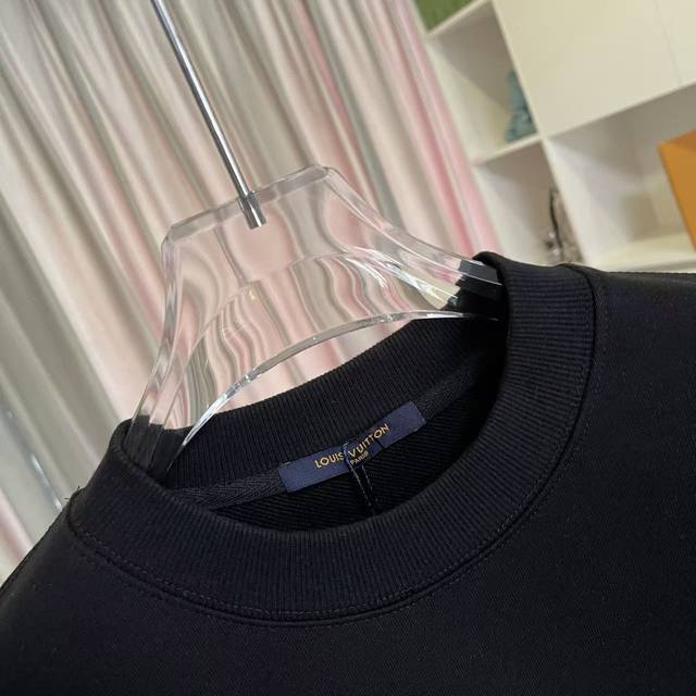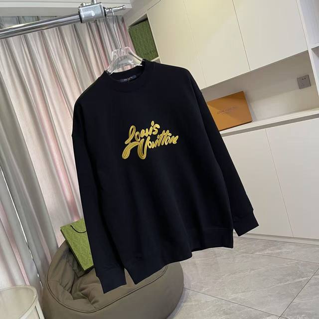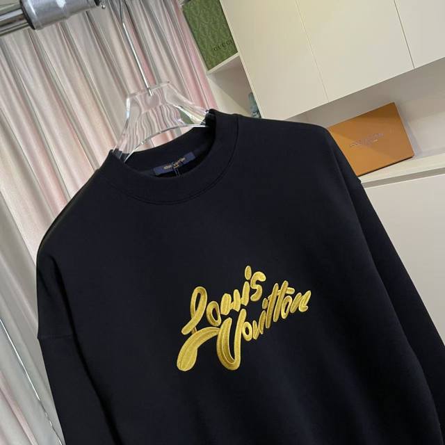 Lv*2025 Autumn/Winter New Arrival, Gold Thread Embroidered Letter Logo, Custom Fabric 400G, Crew Neck Sweatshirt with Complete Labels, Unisex Style. Sizes: S, M, L, XL, XXL (five sizes available). Colors: Black, White.
