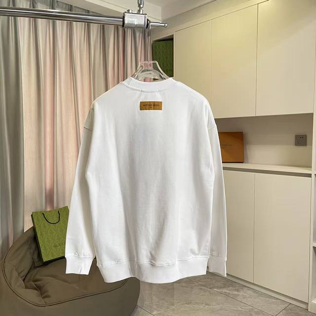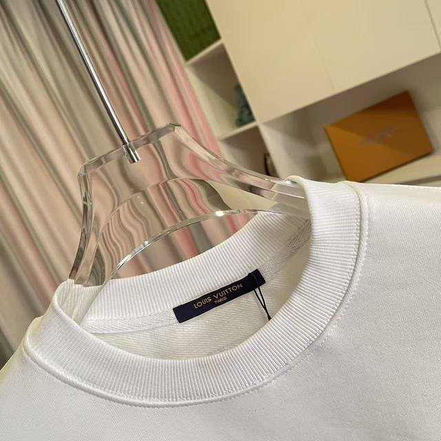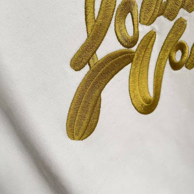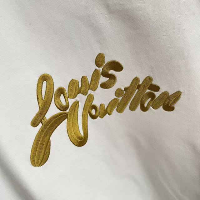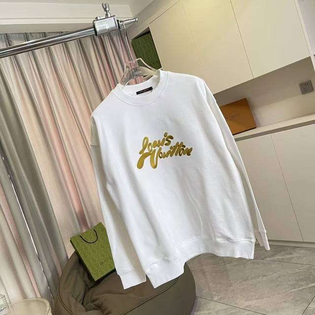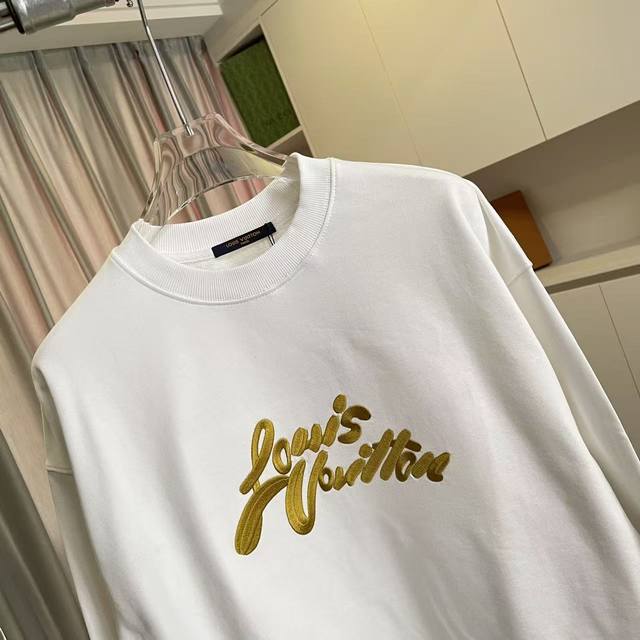 Lv*2025 Autumn/Winter New Arrival, Gold Thread Embroidered Letter Logo, Custom Fabric 400G, Crew Neck Sweatshirt with Complete Labels, Unisex Style. Sizes: S, M, L, XL, XXL (five sizes available). Colors: Black, White.