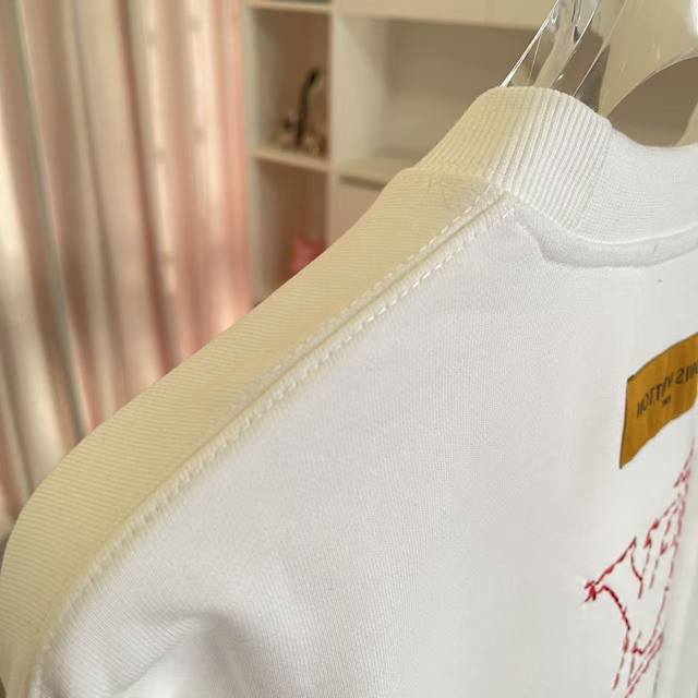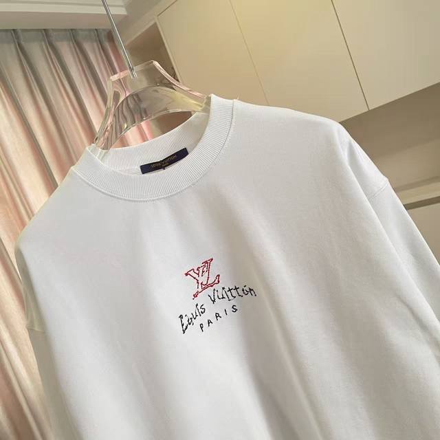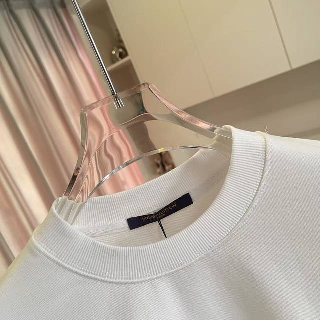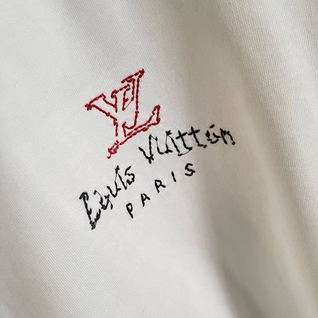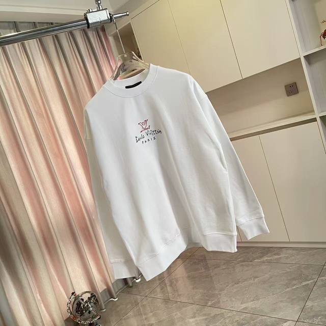 Lv*2025 Autumn/Winter New Embroidered Letter Logo, Custom Fabric 400G, Crew Neck Sweatshirt with Complete Labels, Unisex Style. Sizes: S, M, L, XL, XXL (five sizes available). Colors: Black, White.