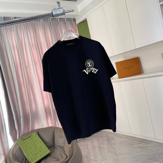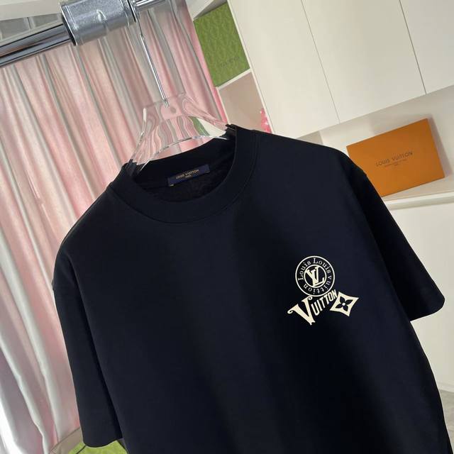 Lv*2025 Autumn/Winter New Style Personalized Letter Logo Print Custom Fabric 300G Short Sleeve T-Shirt Unisex Sizes: SML XL Colors: Black, White, Lake Green, Purple