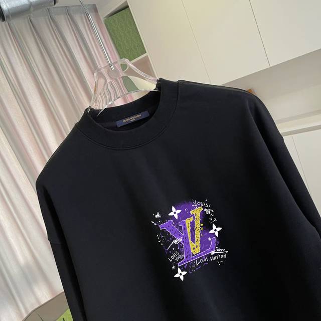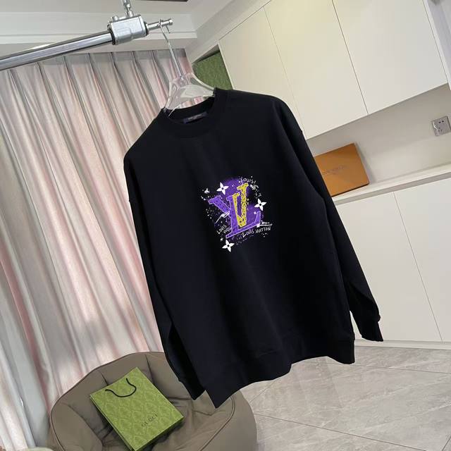 Lv*2025 Autumn/Winter New Style Personalized Letter Logo Print Custom Fabric 400G Crew Neck Sweatshirt Unisex Sizes: SML XL Colors: Black White