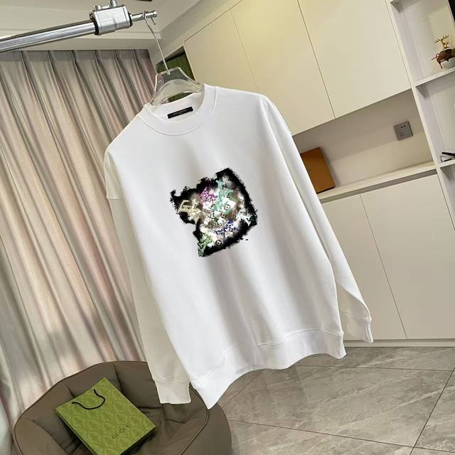 Lv*2025 Autumn/Winter New Style Personalized Letter Logo Print Custom Fabric 400G Crew Neck Sweatshirt Unisex Sizes: SML XL Colors: Black White