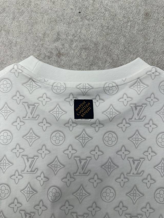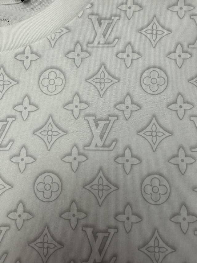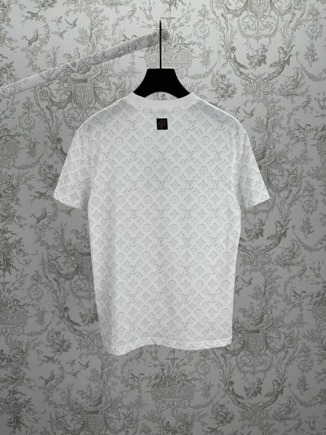 L'Vuitton 25Ss New Monogram Short-Sleeve T-Shirt. This T-shirt features an all-over Halo Monogram print, with a soft halo around the logo. A contemporary interpretation of the brand's graphic, injecting freshness into everyday looks. The T-shirt is made from a lightweight cotton knit fabric and features a woven Marque L.Vuitton D