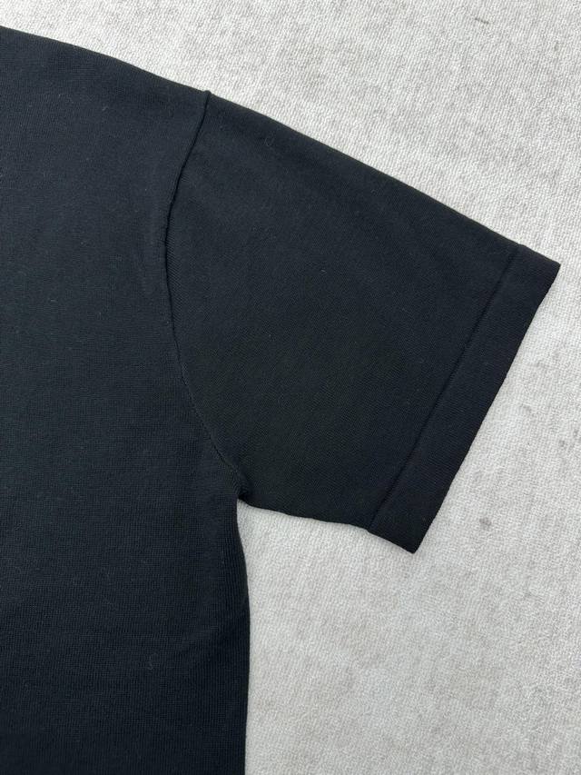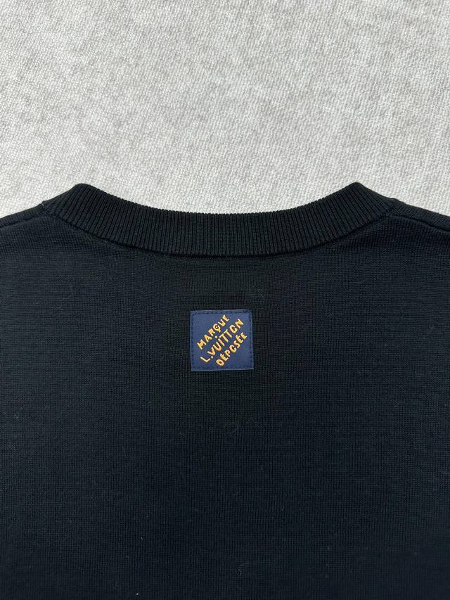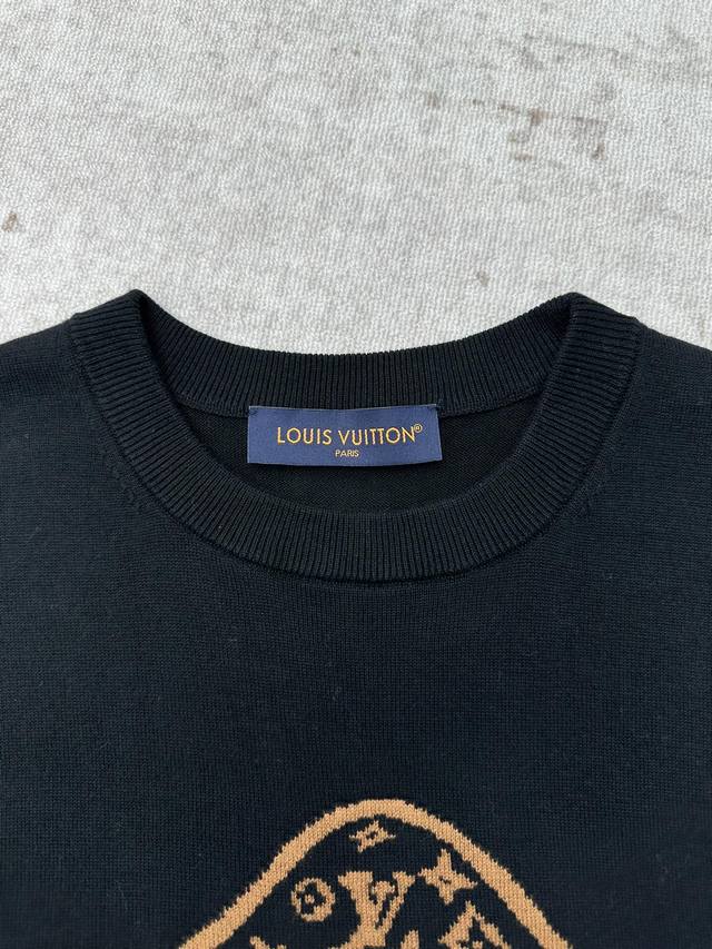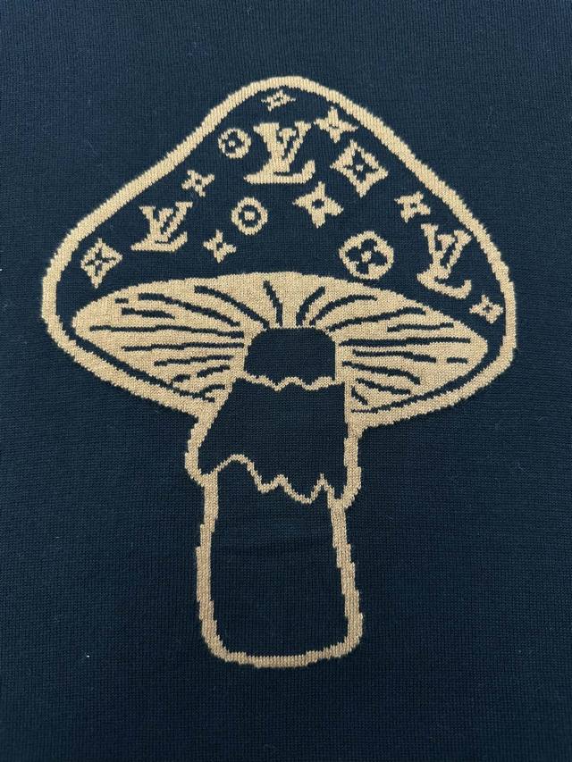 L'Vuitton 25Ss New Short-Sleeve Intarsia Crew Neck T-Shirt. This sleek T-shirt is crafted from finely knitted cotton, featuring a casual style with playful graphics. Inspired by this season's English countryside adventure, it boasts a charming mushroom intarsia pattern on the front, subtly incorporating the Monogram logo. The back features a woven Marque L.Vuitton D