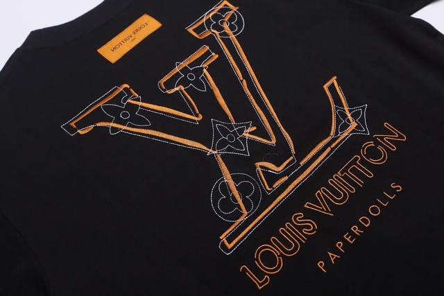 New arrival High version Louis Vuitton embroidered line letter short-sleeved T-s