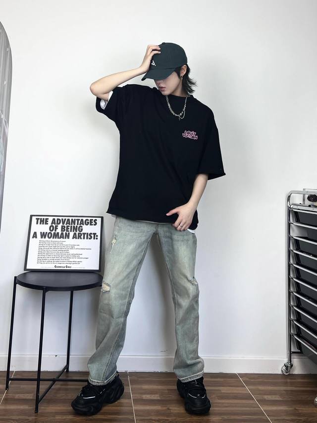 New arrival! Lv new summer round neck short sleeve T-shirt! Same style for men and women, oversized and loose!