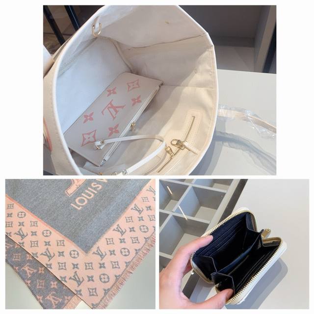 New Arrival Set Ddd Brand New Series Set X324 Ddd LV Shopping Bag + LV Scarf + LV Wallet Ddd Shopping Bag Size: 33*29*17 Ddd Wallet: 11*10 Ddd Product Introduction LV New Strawberry Milk Print Series 4-Piece Set LV's classic Neverfull shopping bag! Comes with an inner pouch, original fabric and hardware! Pairs with a new LV cashmere scarf for super practical use. Matching wallet from the same series is simple and elegant! DDD