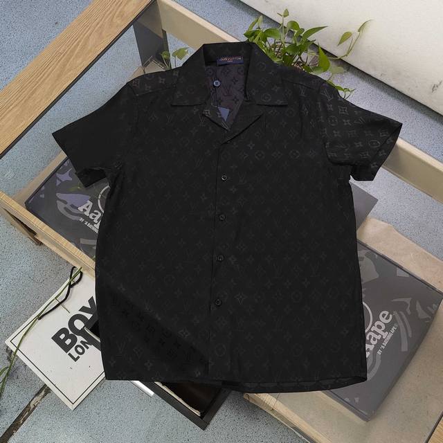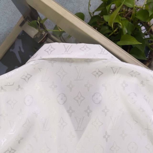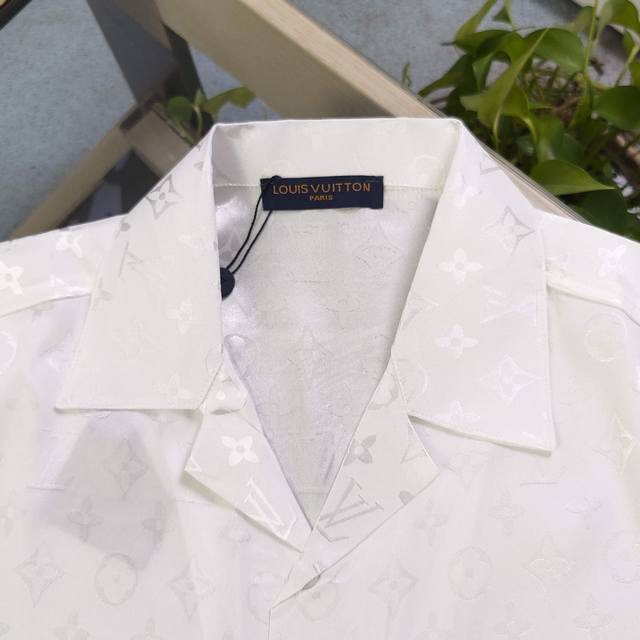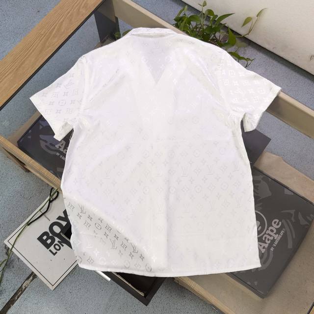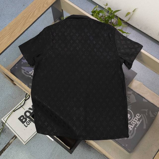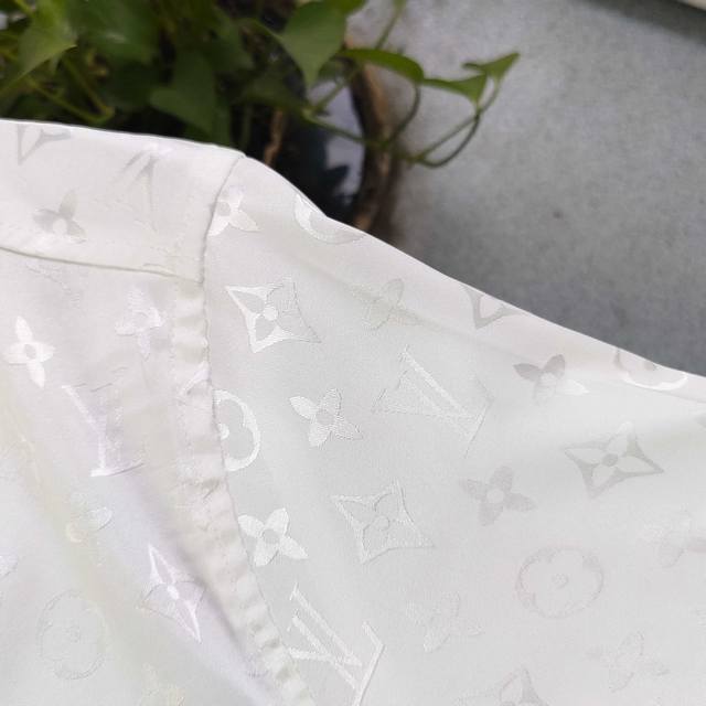 2025 new Louis Vuitton Lv classic full-print four-leaf clover pattern Logo printed couple short-sleeved shirt, made of smooth fabric, more comfortable, positioning cutting, shirt grid, time-consuming and wasteful, the overall printing is three-dimensional and full, wearing trendy and fashionable, perfect for outerwear and inner wear , the same style for men and women!