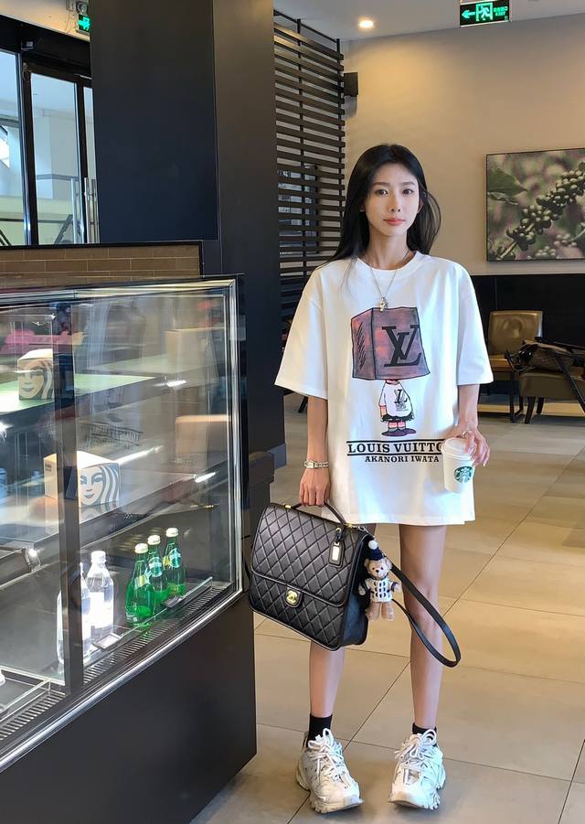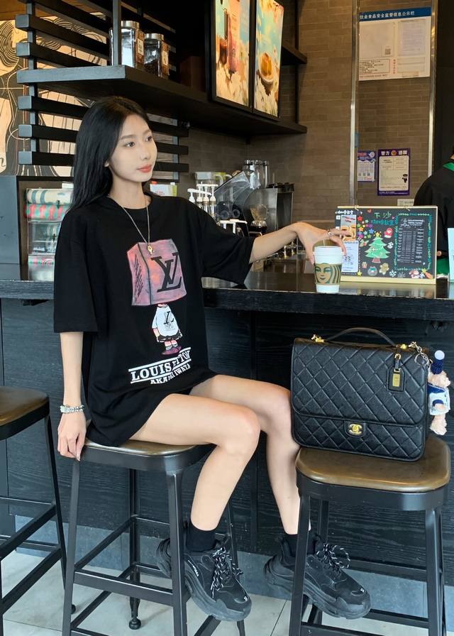 Louis Vuitton Ss block man graffiti round neck short sleeves, unisex.