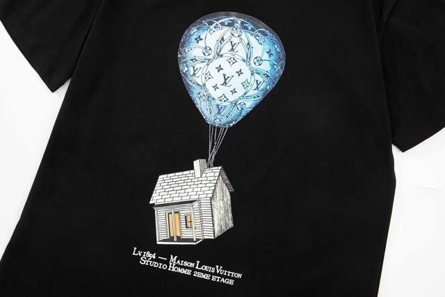 Louis Vuitton hot air balloon house pattern embossed short-sleeved T-shirt