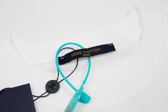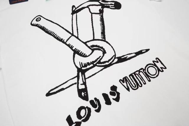 Lv Louis Vuitton 23Ss Hammer pattern letter short sleeves, imported printing, smooth cuffs with logos, made of pure cotton double yarn fabric, loose and casual upper body effect, three labels complete, same style for men and women