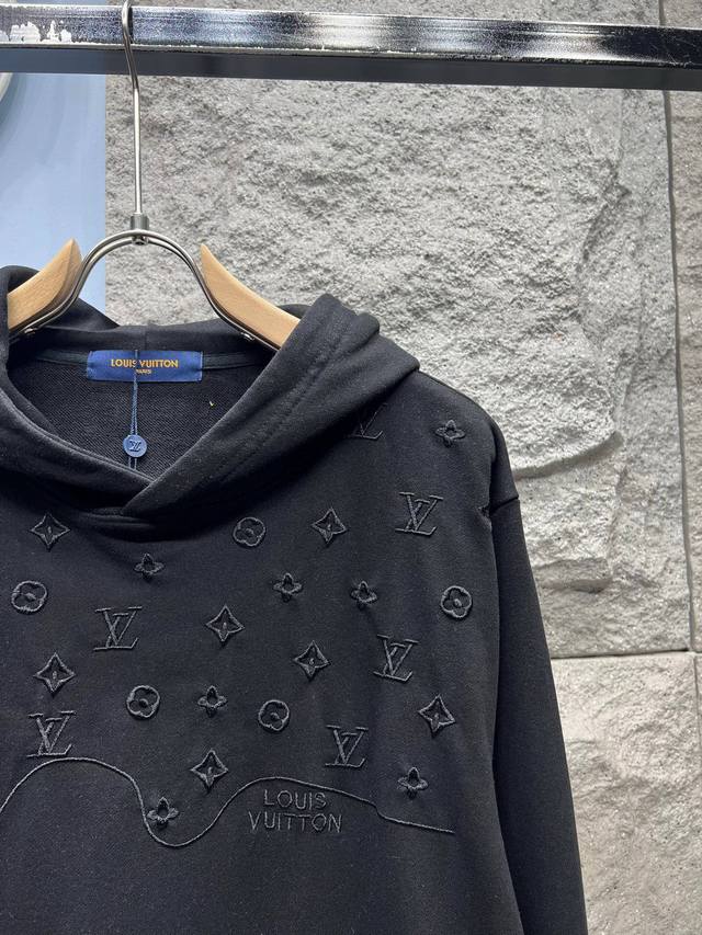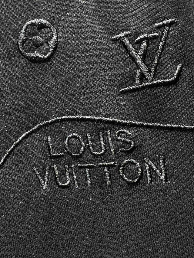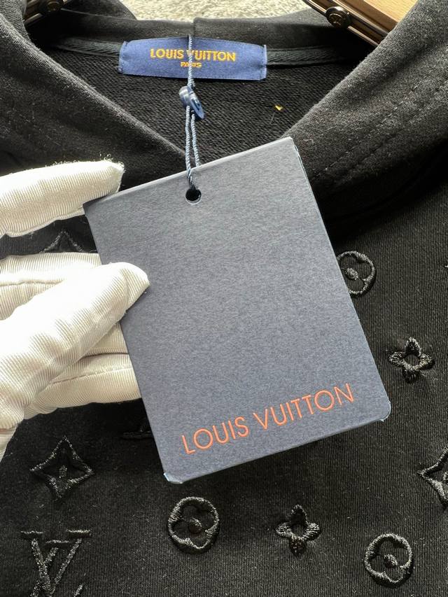 New, top-tier Louis Vuitton release, 2025 Fall/Winter new arrival, Lv Donkey's monogrammed half-length hooded sweatshirt, unisex base coat. * Made from double-stranded, double-yarn, 430g pure cotton sweatshirt fabric, the fabric is woven with double strands and twisted to maintain the silhouette even when cut loose. The Os version has a more relaxed, loose feel. *Embroidery craftsmanship: Utilizing imported machine embroidery technology, advanced computer control systems and precision mechanical components, the half-length embroidery design achieves a full, contoured silhouette. The Lv monogram logo is embroidered on the cuffs. *A very fashionable style, the overall design is very layered and artistic, effortlessly adaptable to a variety of occasions. *Distinguished from all market versions, every detail is restored. *Unafraid of comparison! Only high-end products, as shown in the pictures! *Colors: Black and White, unisex. *Sizes: S-Xl.