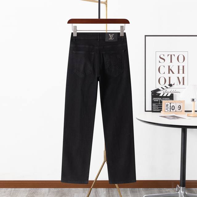 Oc-586 Lv Louis Vuitton dark print spring and summer men's jeans original factor