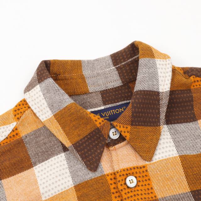 Official 1:1 Original Quality Louis Vuitton 24Fw Orange Damier Jacquard Flannel Shirt 24Ss New Button-Up Flannel Long-Sleeve Shirt This new button-down flannel long-sleeve shirt embodies American workwear style with exquisite craftsmanship. The wool jacquard pattern echoes the brand's classic Damier design, while the Marquel.Vuittond
