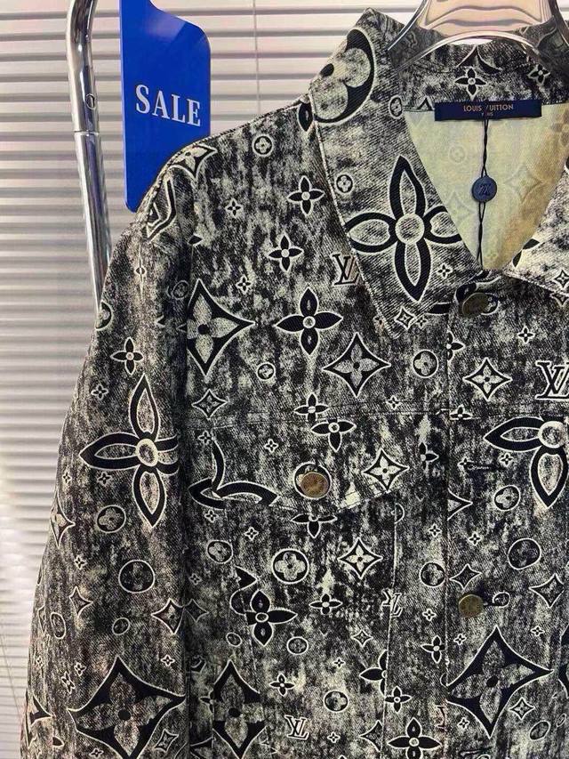 Product Name: Lv 23Ss New Dark Pattern Distressed Old Flower Full Print Washed Denim Jacket Unisex Couple Loose Jacket