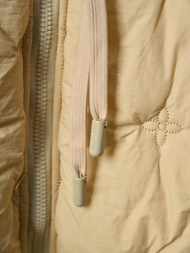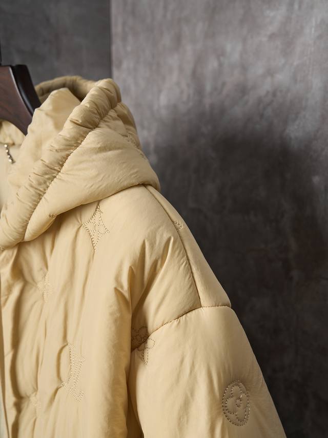 Real item hanging photo Lv Louis Vuitton monogram embroidered cotton-padded jacket with zip-up hood DDD Ddd In stock 46 48 50 52 DDD Originally purchased for 27,500, made of pure nylon woven fabric with polyester fiber quilted filling. The lining has a laminated effect. The entire piece features a matching quilting process, with imported cotton quilting machine positioning to increase the overall texture and hold the filling in place, preventing it from shifting. The front and back panels are fully matched with embroidery, with consistent embroidery spacing and symmetry, making the workmanship very complex. The placket and double pockets have custom-made resin zippers with custom-sprayed lettering and painted finish, partially revealing the white zipper pulls. It features a drawstring hood design and bullet-shaped bell embellishments. Lightweight and comfortable to wear, it feels like a down jacket, providing warmth, windproof protection, and a stylish look. DDD