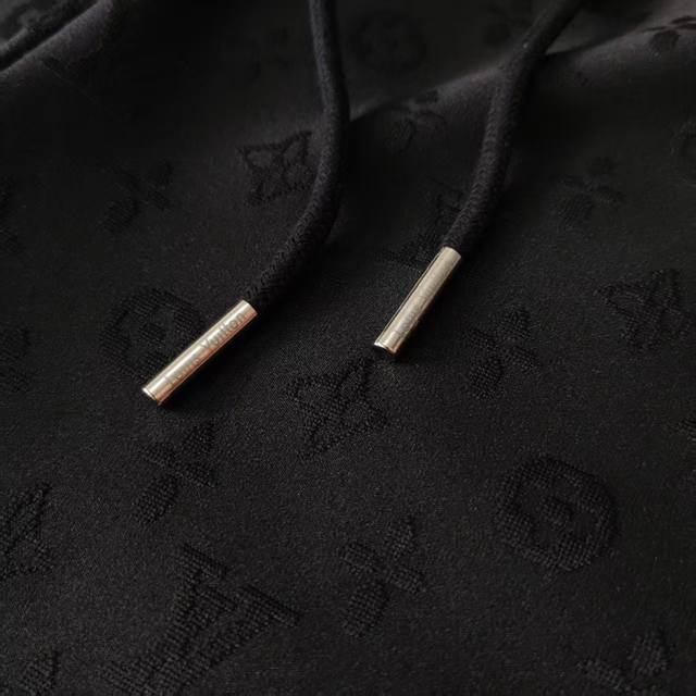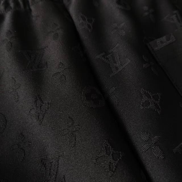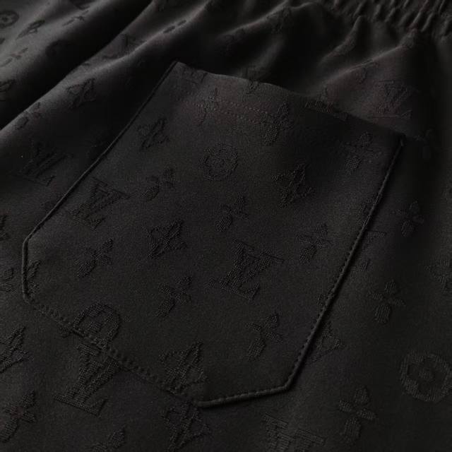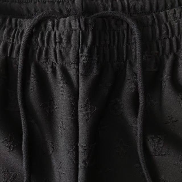 Real shot details + size chart. Louis Vuitton all-over monogram jacquard textured shorts. Original mold. Custom 360G terry cloth fabric, custom rayon. 61% viscose, 32% nylon, 7% cotton. Materials and workmanship details are consistent with the boutique. Full-width Monogram jacquard pattern, details and cut are consistent with the boutique. Features dropped shoulders and chain details at the neck, releasing a fresh and relaxed style. Full infrared alignment and positioning tailoring. Exclusive item, identical back collar and shoulder/sleeve craftsmanship. Custom-made with the same numbered wash for the highest quality. Boutique quality. Can be compared with any version. Best paired with a matching short-sleeved shirt! Kq85 Colors: White, Black Size: S-XL