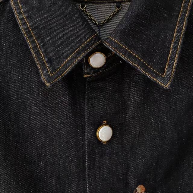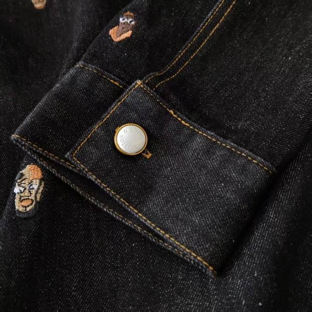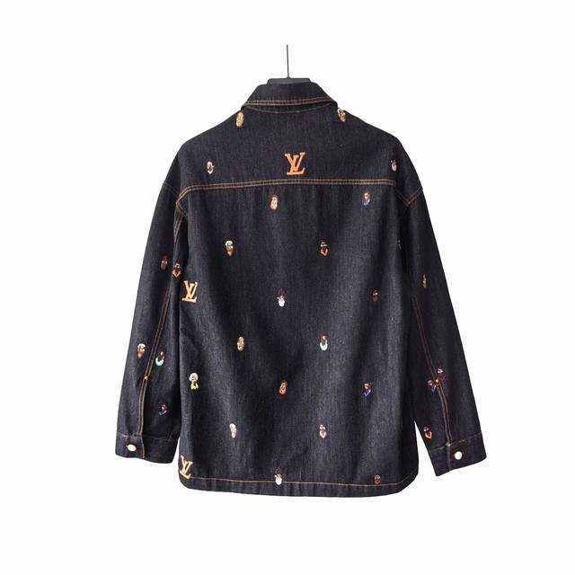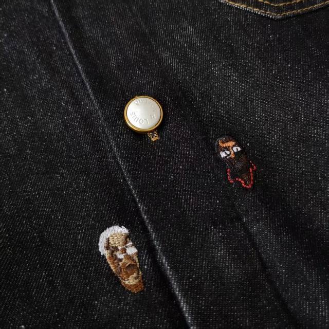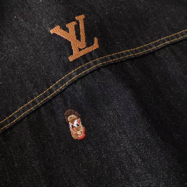 Real Shot Details + Size Chart DDD Louis Vuitton Denim Washed Anime Embroidery Denim Shirt Jacket DDD Made of twill pure cotton denim, a natural cotton fiber, thus possessing natural softness and comfort, as well as good moisture absorption and breathability. Matte close-stitch embroidered anime portrait logo, using contrasting matte embroidery thread for the best reproduction of the original. The embroidery is very fine with dense stitches; by controlling the direction and tension of the embroidery thread, the embroidery thread forms a beautiful portrait on the fabric, combined with a denser treatment to increase the three-dimensional effect. DDD During the normal wash, water and detergent are used for washing, and gentle rubbing and rinsing make the denim softer and cleaner. DDD Custom pearl buttons: Minimum order of 60,000 pieces, cost of one pearl button RMB. Independently developed Pharrell series square washed denim, complete with three labels. 53 DDD Color: Washed Black DDD Size: M-XL DDD