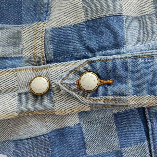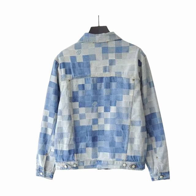 Real shot details + size chart Ddd Louis Vuitton & Louis Vuitton Mosaic Pharrell Williams collaboration autumn/winter denim jacket Ddd set. Checkered Japanese denim fabric, full-width Damoflage jacquard, incorporating yarn-dyed jacquard technology. Yarn-dyed refers to dyeing the yarn in different colors before weaving. Japanese denim sand washing and distressing process, crisp and stylish texture. The garment's anatomical structure features a new pearl button closure design, with clear engraving on the pearl surface. The latest pearl button design is luxurious and fashionable. A must-have for trendy men and women this year, highly recommended! Sy14 Ddd Size: 46-52 Ddd Color: Original color Ddd