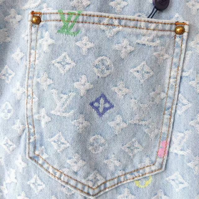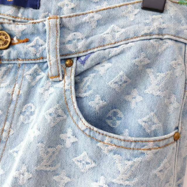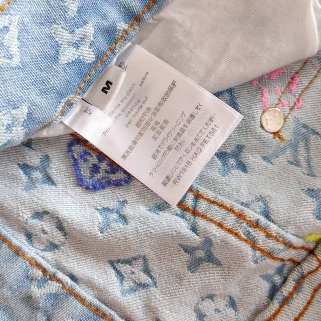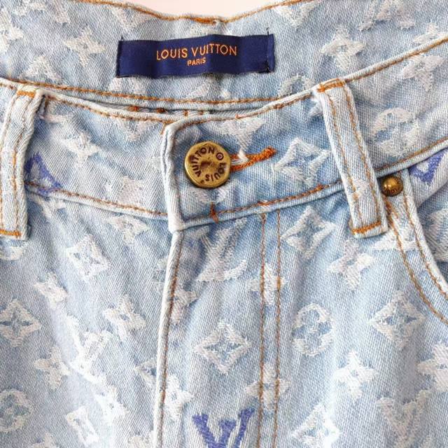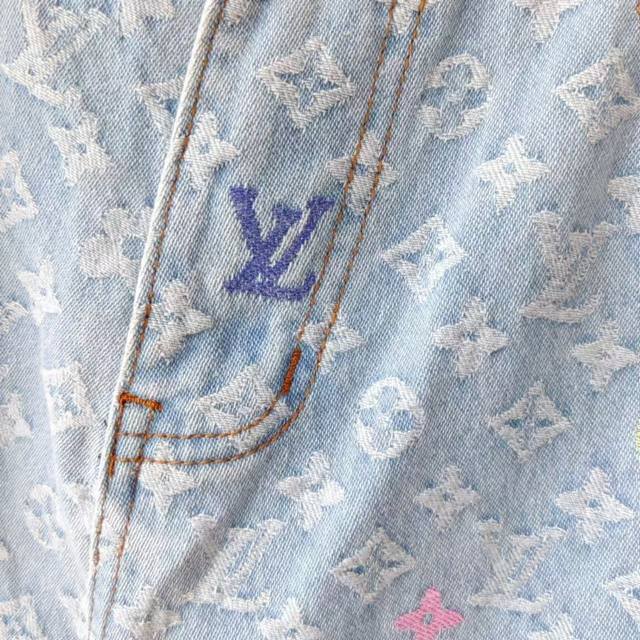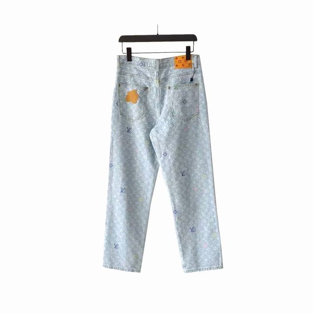 Real shot details + size chart Ddd Louis Vuitton & Louis Vuitton X Tyler 24Ss logo embroidered autumn/winter jeans Ddd Japanese style denim full width Damoflage jacquard, incorporating yarn-dyed jacquard technology. Yarn-dyed refers to dyeing the yarn in different colors before weaving. Japanese denim sand washing and distressing process, crisp and stylish texture. The garment's anatomical structure features a new pearl button closure design, with clear engraving on the pearl surface. The latest pearl button design is luxurious and fashionable. A must-have for trendy men and women this year, highly recommended! Ys19 Ddd Size: M-XL Ddd Color: Original color DDD