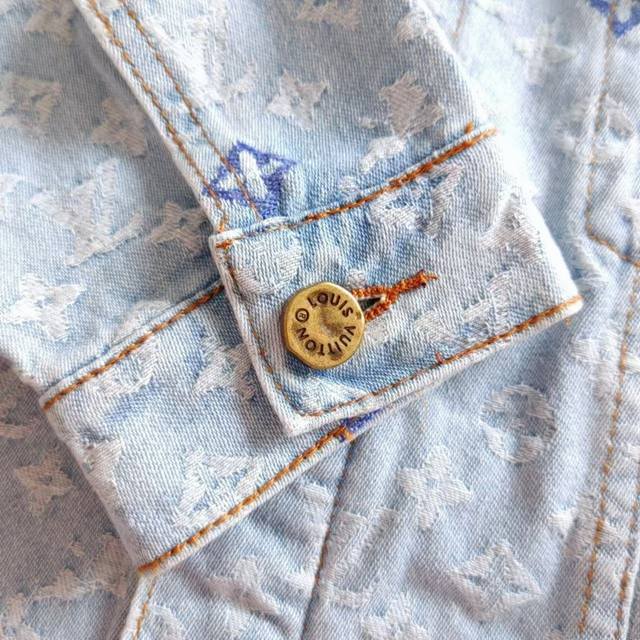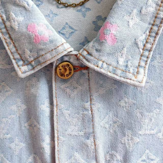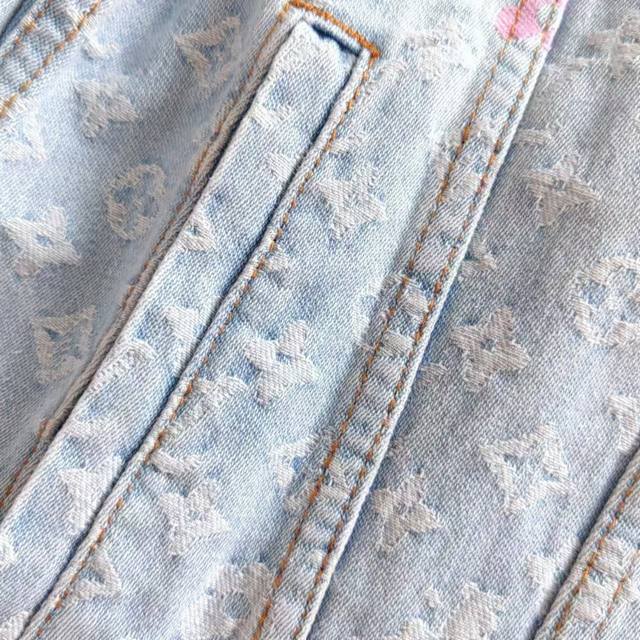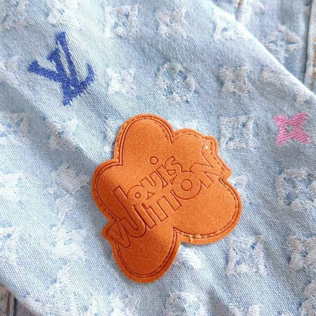 Real shot details + size chart Ddd Louis Vuitton & Louis Vuitton X Tyler Logo 24Ss Letter Embroidery Autumn Winter Denim Jacket Ddd Japanese style denim fabric full width Damoflage jacquard. The whole garment incorporates yarn-dyed jacquard technology, which means that the yarn is dyed in different colors before weaving. Japanese denim sand washing and distressing process, the texture is crisp and stylish. The garment body has an anatomical structure, and the closure is made of new pearl buttons. The pearl surface is clearly engraved. The latest pearl button design is luxurious and fashionable. This year's must-have for trendy men and women, highly recommended! Sy18 Ddd Size: M-XL Ddd Color: Original color DDD