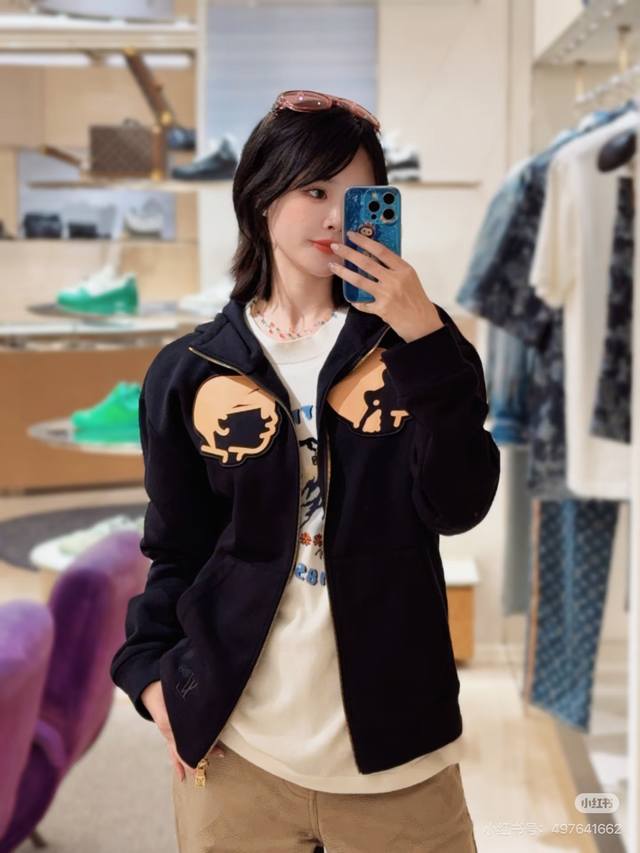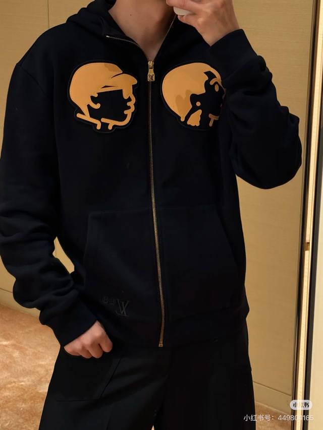 Louis Vuitton Louis Vuitton Cardigan Jacket 1V 25Fw Autumn and Winter Lv pharrell *Nigo co-branded celebrity head hooded sweatshirt