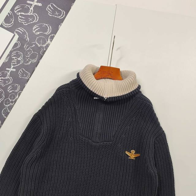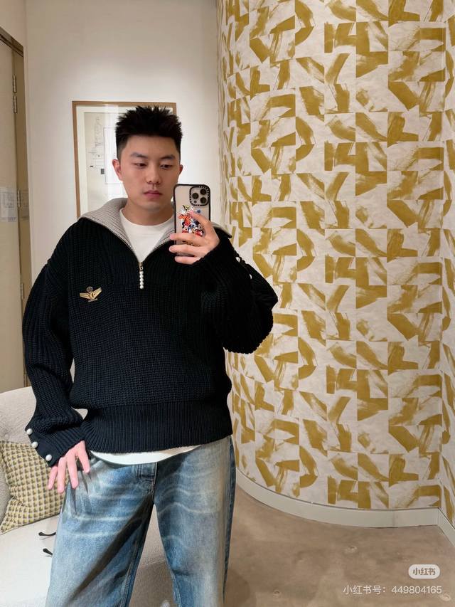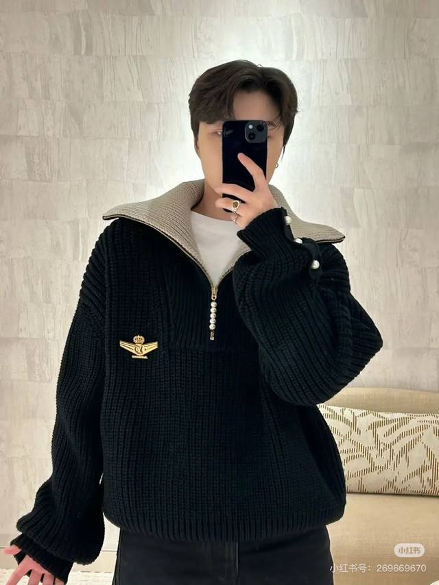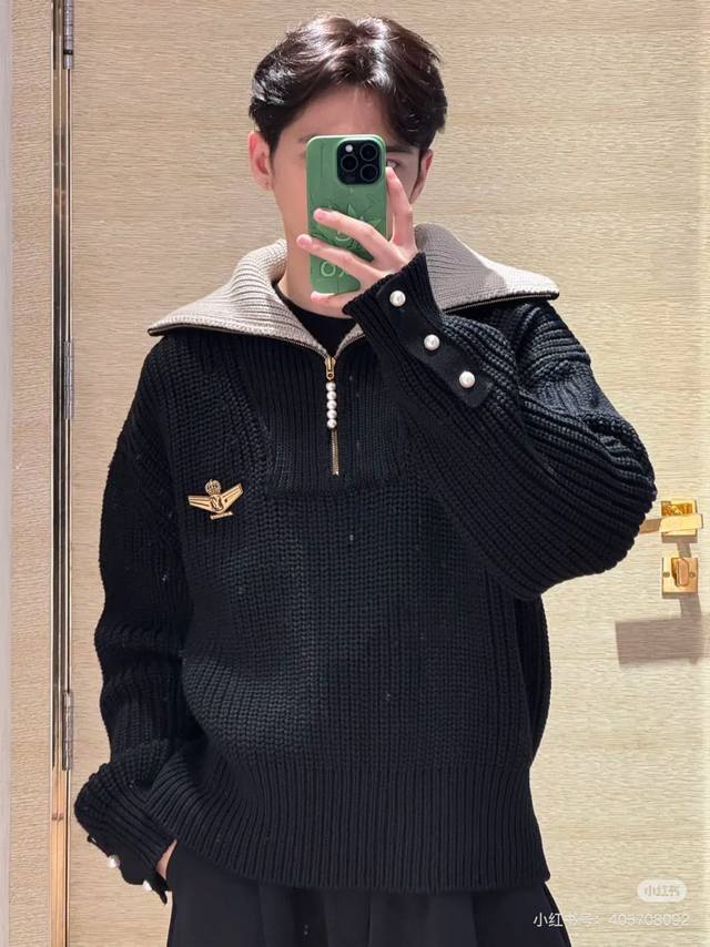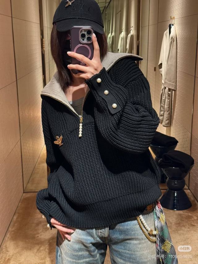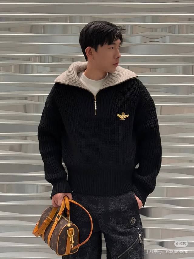 Louis Vuitton Pullover Sweater 2025 Autumn and Winter Thickened Sheep Blend Aviator Brooch Half-Zip Knitted Cardigan Sweater