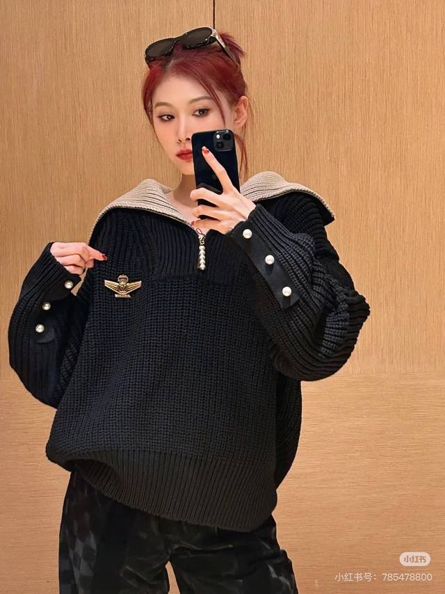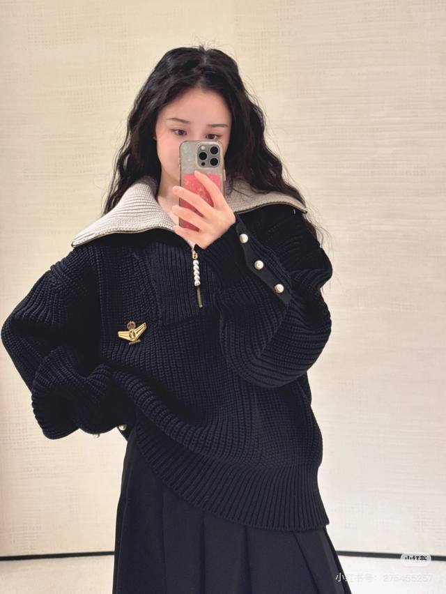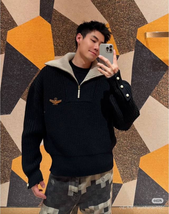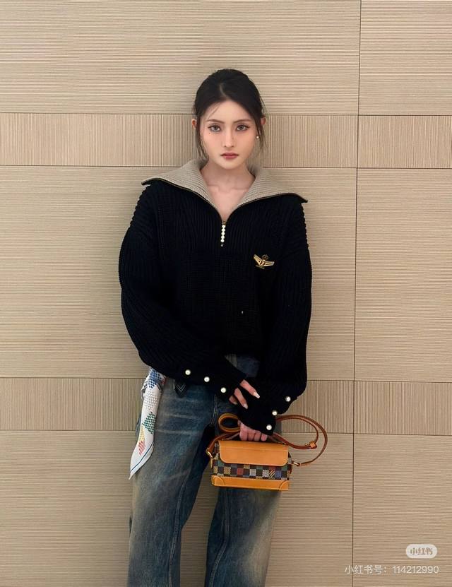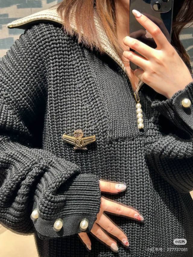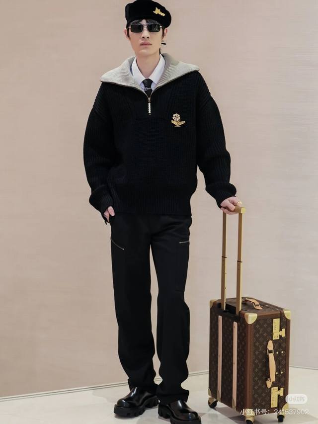 Louis Vuitton Pullover Sweater 2025 Autumn and Winter Thickened Sheep Blend Aviator Brooch Half-Zip Knitted Cardigan Sweater