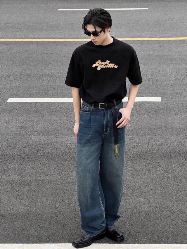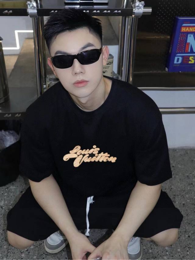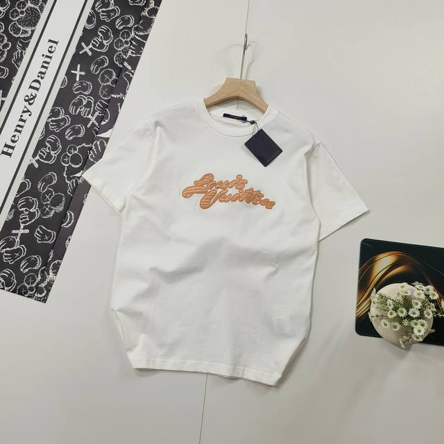 Louis Vuitton 2025 Ss Home Lv Artistic Letter Logo Embroidered Short-Sleeve T-shirt