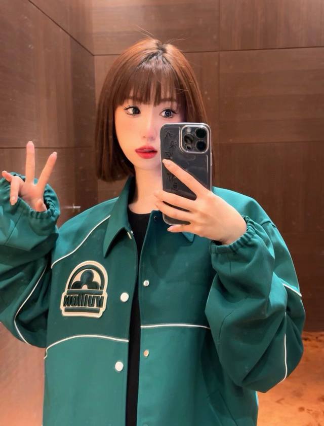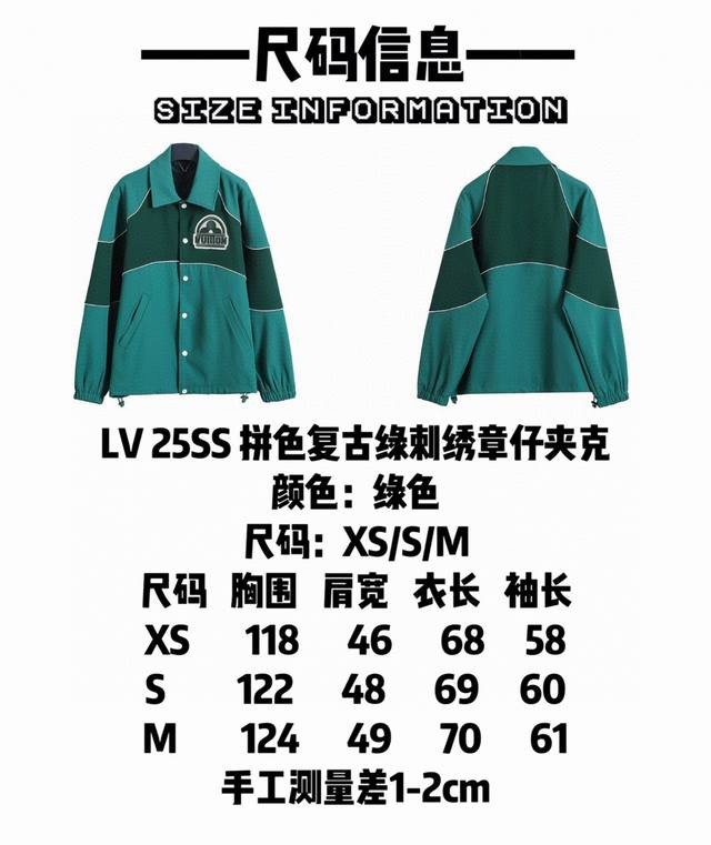 Special Offer Stock: Louis Vuitton 1V 25Ss Bai Jingting's Same Style Color Block Retro Green Embroidered Patch Jacket