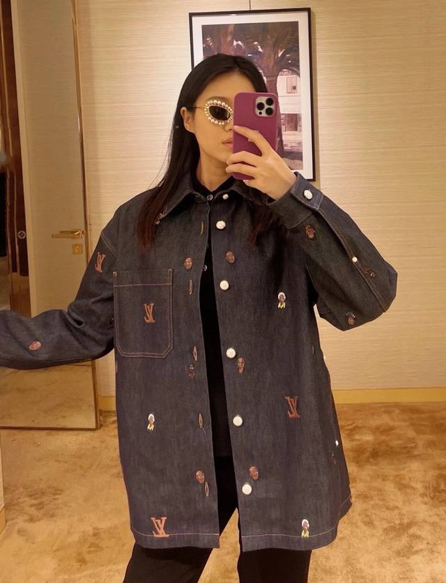 Louis Vuitton 1V 25Ss Henry Taylor Portrait Embroidered Denim Jacket